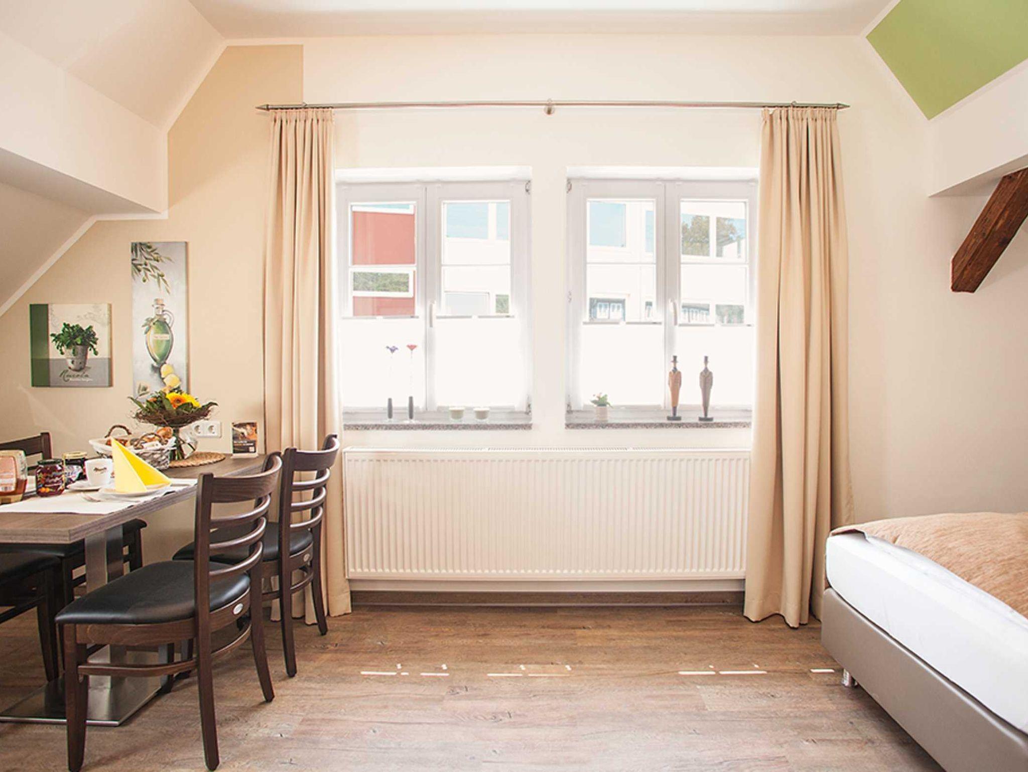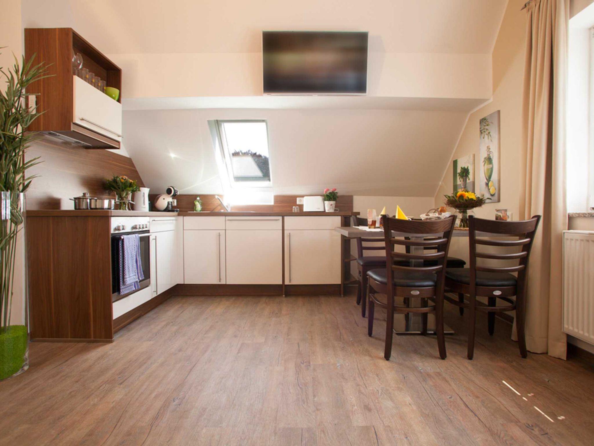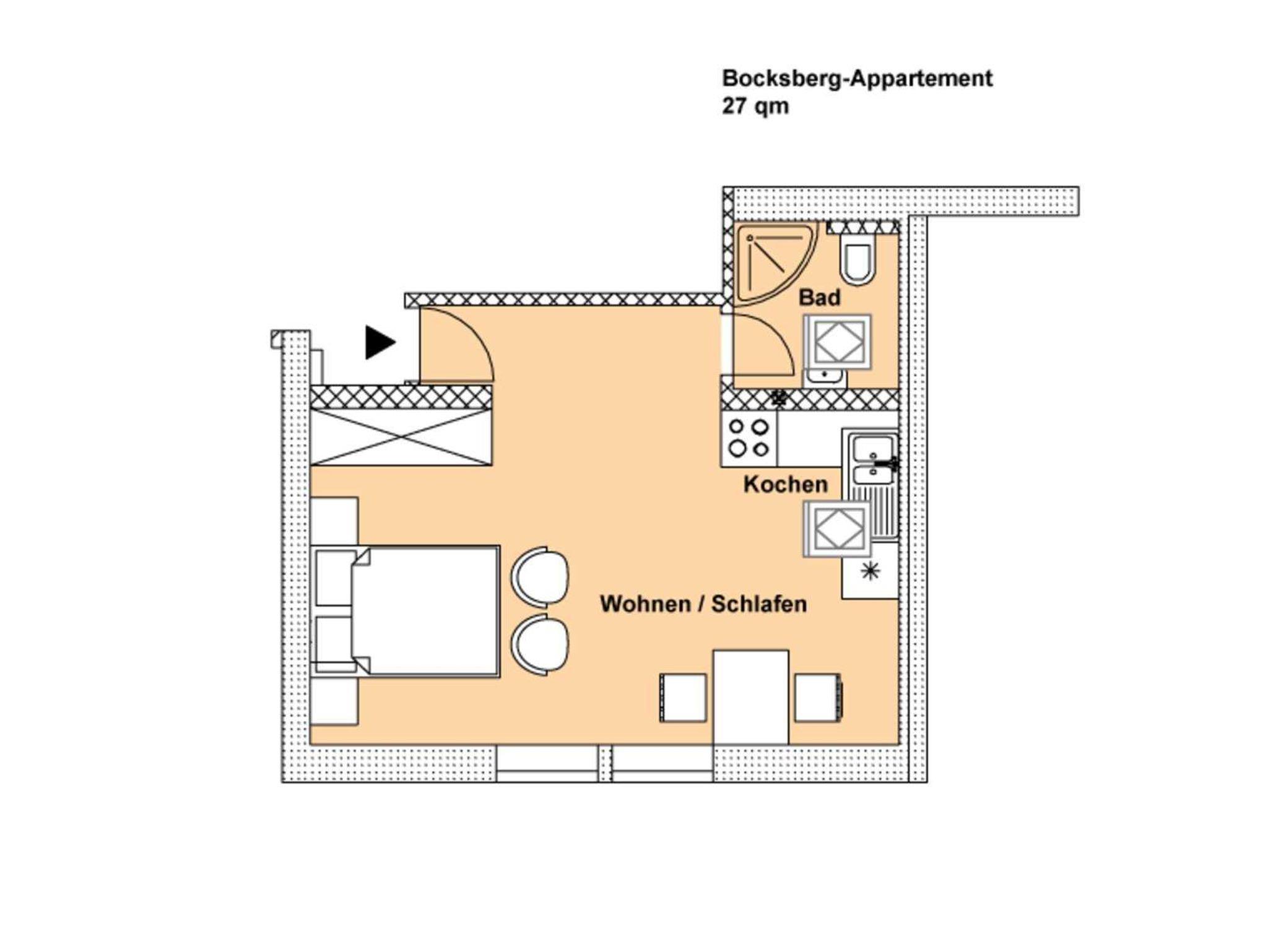Klein aber fein! Die 27 m² große Bocksberg-Ferienwohnung befindet sich im 1. OG und eignet sich besonders für den Urlaub zu Zweit. Neben dem kombinierten Wohn-Schlafbereich steht Ihnen eine modern ausgestattete Küche sowie Badezimmer mit Fußbodenheizung zur Verfügung. Auch in dieser 3-Sterne-Ferienwohnung brauchen Sie natürlich nicht auf den 5-Sterne-Schlafkomfort zu verzichten: Boxspringbetten sind auch in dieser Wohnung vorhanden. Daneben stehen Ihnen ebenfalls alle Einrichtungen des Hauses kostenlos zur Verfügung.
