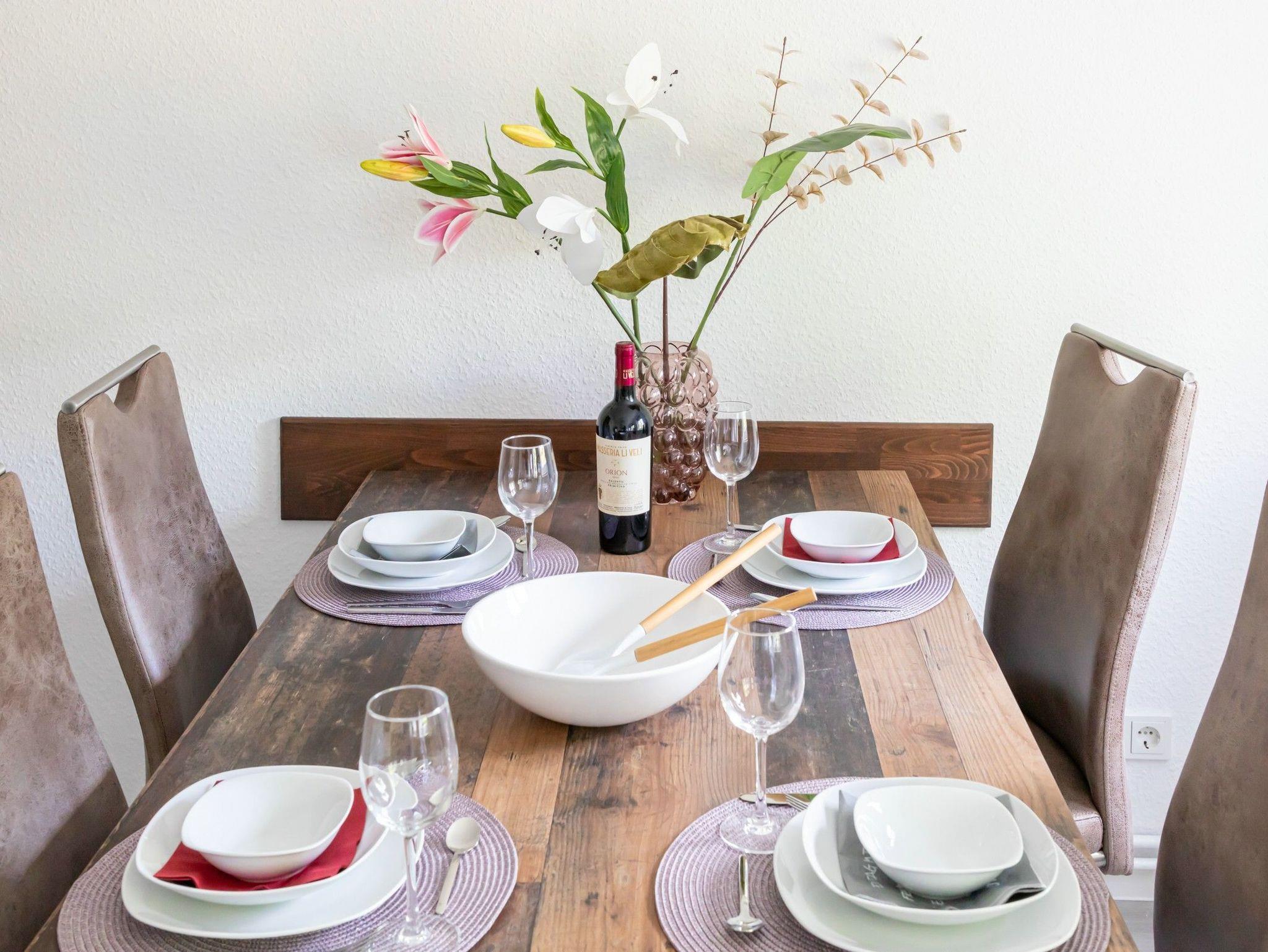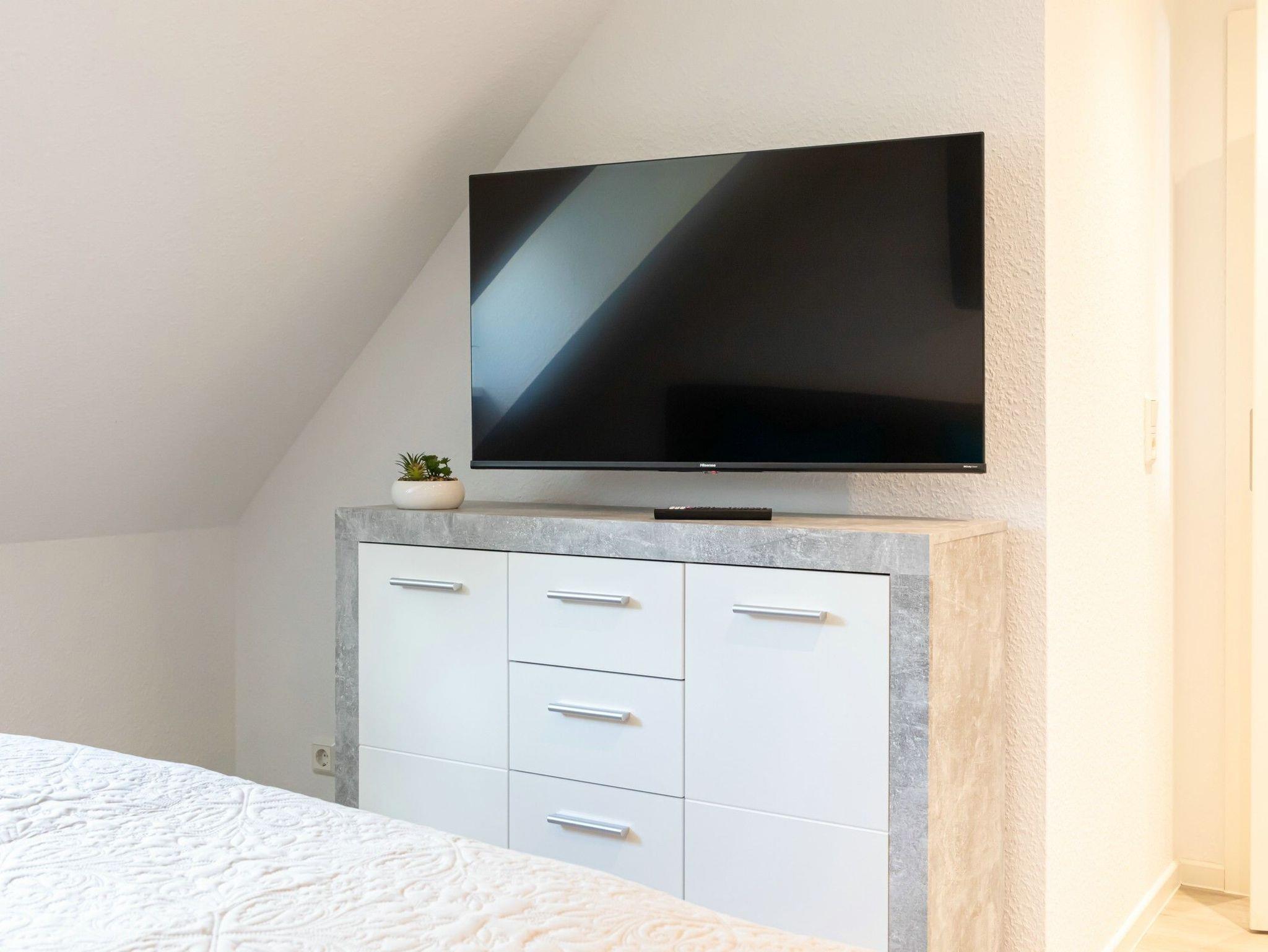 Jedes Appartement verfügt über eine voll ausgestattete Küche, bzw. Küchenzeile mit Geschirrspüler, Kühl- und Gefrierschrank, Kaffeemaschine, Wasser- u. Eierkocher, Toaster, Kostenfreies W-LAN, einen, beziehungsweise mehrere Flachbild-Sat-TV und ein eigenes Bad mit einer Dusche, kostenfreien Pflegeprodukten und einem Haartrockner. Unsere Schlafzimmer verfügen überwiegend über Boxspringbetten in der Größe 1,80 x 2,00 Meter und USB Steckdosen am Bett. Ihre E-Bikes können in einer Gemeinschaftsgarage abgestellt, und auch geladen werden. Ein abschließbares Fach für Ihre Fahrradutensilien ist auch vorhanden. Auch können Sie unsere Waschmaschine und Trockner (gegen Gebühr) nutzen. Die Energiekosten in den Wohnungen (Heizung, Strom, Warmwasser) sind inklusive. Bei Buchungswünschen über 6 Personen bitten wir Sie, uns anzurufen.