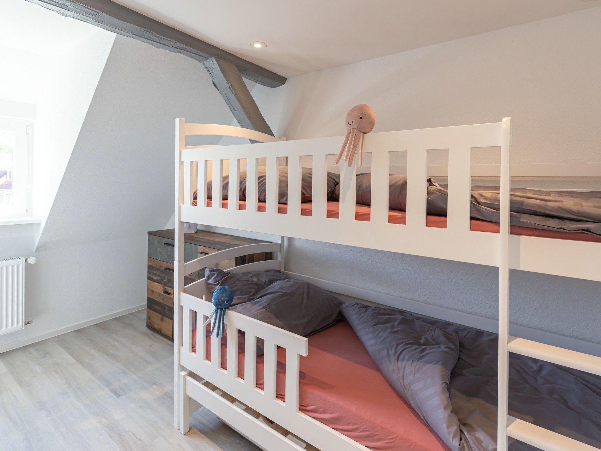 Klapperhagen, Appartement mit 45 qm im 2. Obergeschoss und Blick über die Altstadt Goslars, 1 Schlafzimmer mit Boxspringbett (Bettwäsche 155x220 cm), 1 Zimmer mit einem 3er Etagenbett und im Wohnzimmer befindet sich eine Schlafcouch. Eine kleine vollausgestattete offene Küche ist auch vorhanden.