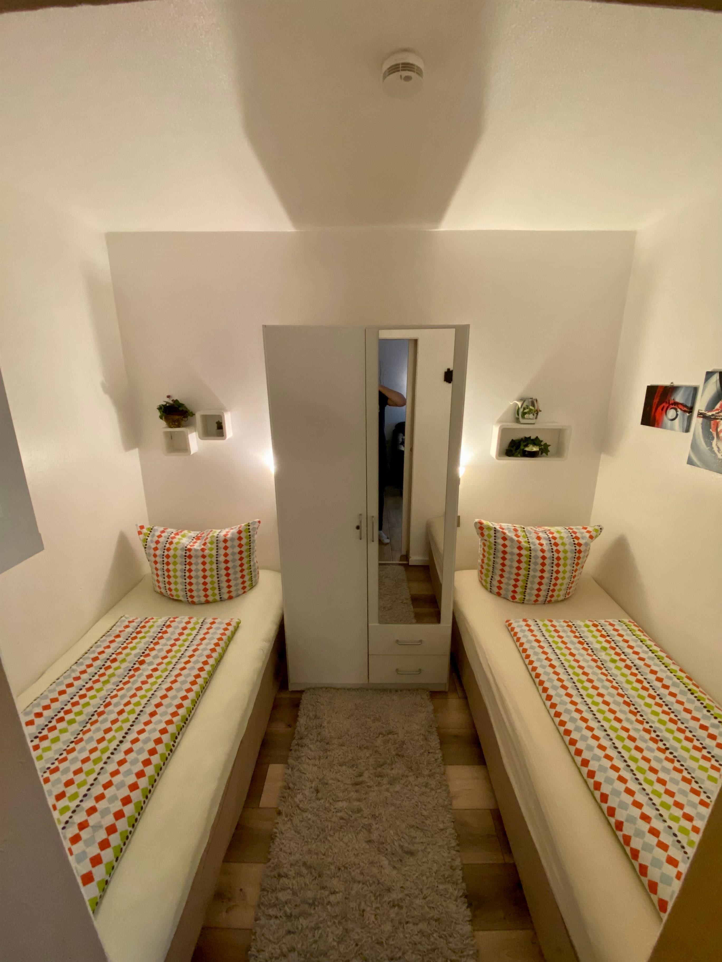Das Schlafzimmer mit den Einzelbetten hat kein Fenster, darauf möchte ich hinweisen, weil einige Gäste in den Bewertungen geschrieben haben, dass es sie stört.