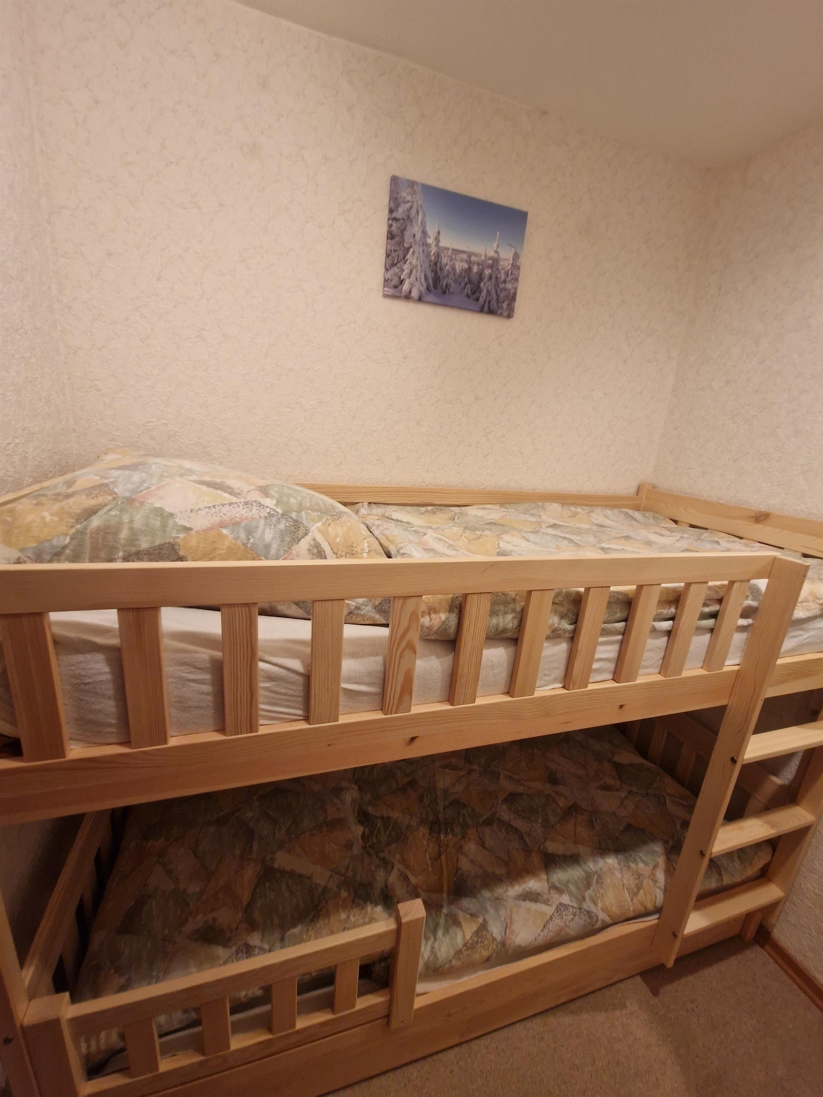 Es gibt drei Schlafzimmer: Eines mit einem Boxspring-Doppelbett (140x200cm), eines mit zwei Einzelbetten (90x200cm) und eines mit einem Etagenbett (80x190cm). Sowohl das Doppelbett als auch das Etagenbett wurden im Juli 2025 angeschafft und sind ebenso wie die Matratzen komplett neu.