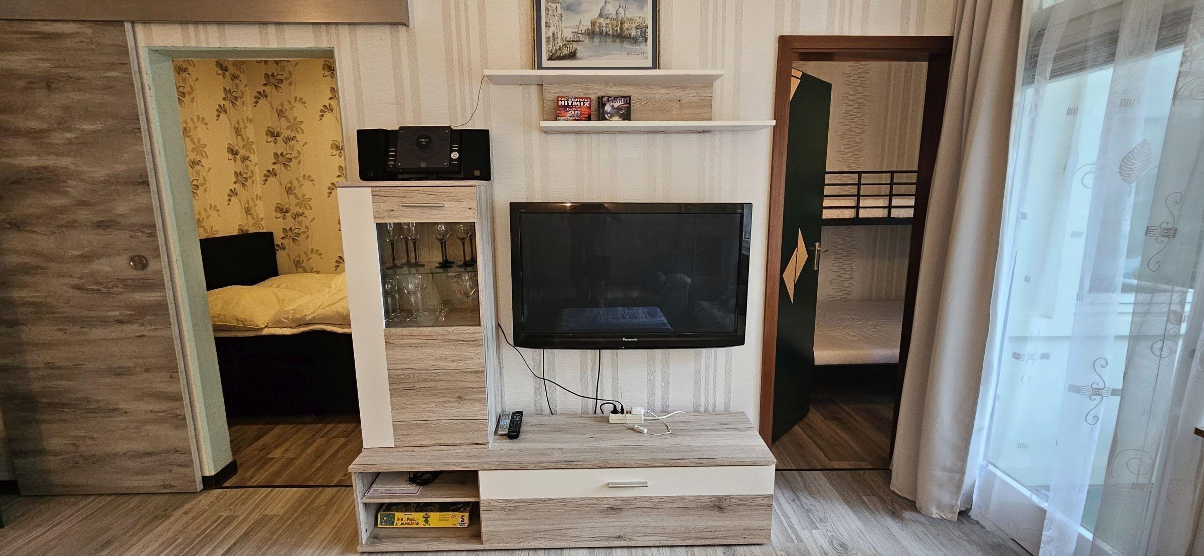 Die Ferienwohnung bietet eine komfortable und seniorengerechte Unterbringung in zwei Schlafzimmern, ausgestattet mit einem Doppelbett und zwei Einzelbetten. Die offene Küche ist modern gestaltet und enthält einen Elektro-/Gasherd, Backofen, Geschirrspüler, Kühlschrank, Kaffeemaschine, Toaster und Wasserkocher. Hier können Gäste ihre Mahlzeiten am Esstisch in geselliger Runde genießen. Das Badezimmer verfügt über eine bodengleiche Dusche, einen Spiegel und ist optimal für barrierefreies Wohnen konzipiert. Ein großzügiges Wohnzimmer mit Sofa und Sessel lädt zum Entspannen ein. Zur Ausstattung gehören zudem WLAN, ein TV sowie praktische Geräte wie Waschmaschine und Wäschetrockner. Ein Fahrstuhl garantiert einen bequemen Zugang. Die Wohnung ist mit Rauchmeldern ausgestattet, um die Sicherheit der Gäste zu gewährleisten. Geschirr, Besteck und Geschirrtücher sind ebenfalls vorhanden, sodass einem angenehmen Aufenthalt nichts im Wege steht.