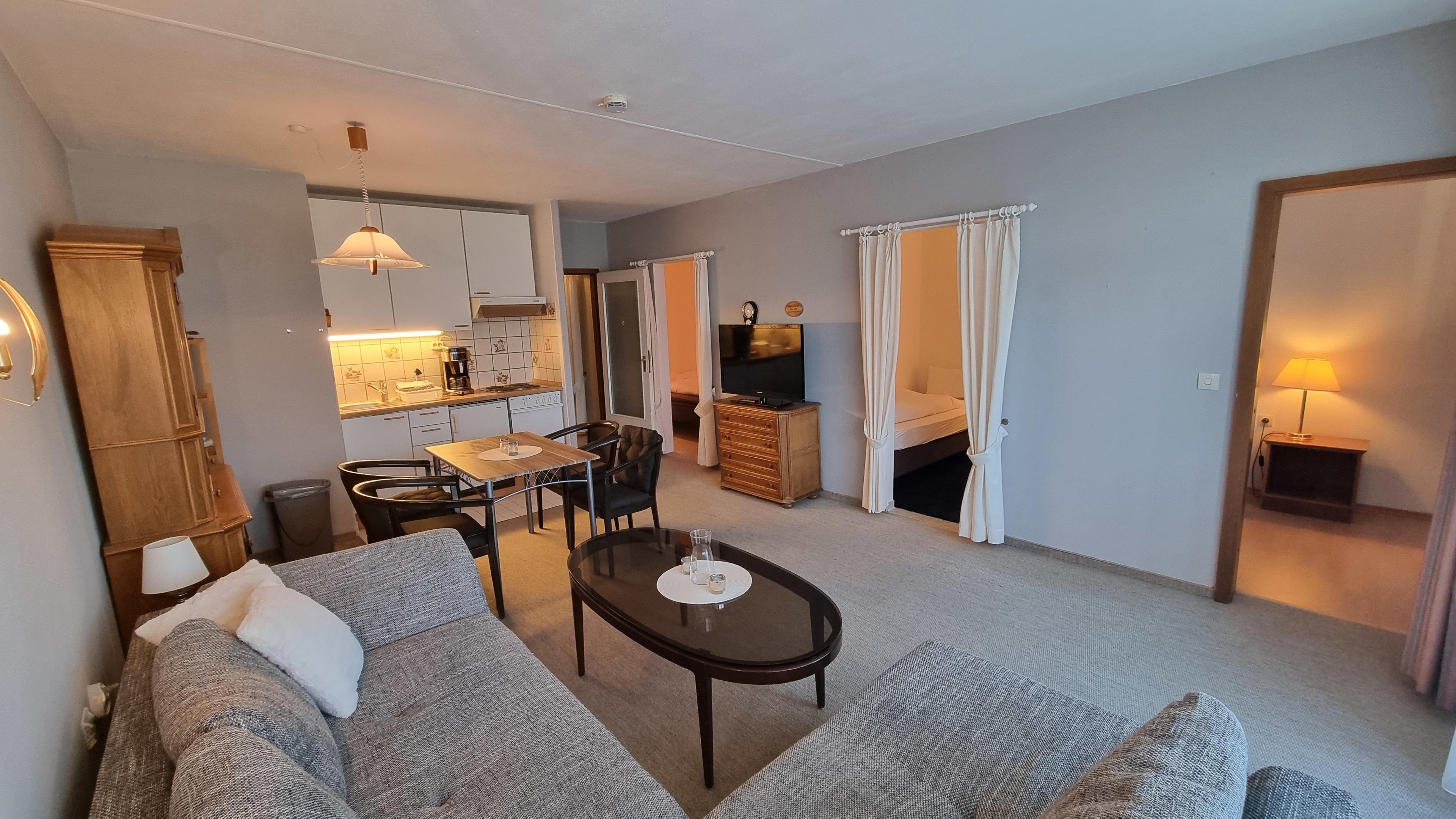 Die Wohnung ist voll ausgestattet und bietet Ihnen alles, was Sie für einen angenehmen Aufenthalt benötigen. Der offene Wohnbereich lädt mit gemütlichen Sitzgelegenheiten zum Verweilen ein, und die Küche ist komplett eingerichtet, sodass Sie Ihre Mahlzeiten auch selbst zubereiten und im Essbereich genießen können. Selbstverständlich steht Ihnen kostenfreies WLAN zur Verfügung. Der großzügige Balkon samt Sitzmöglichkeiten steht Ihnen ebenso zur Verfügung. Für Ihre Skiausrüstung, Ihre Fahrräder oder ein Hundebett befindet sich ein großer Abstellraum in der Ferienwohnung.
