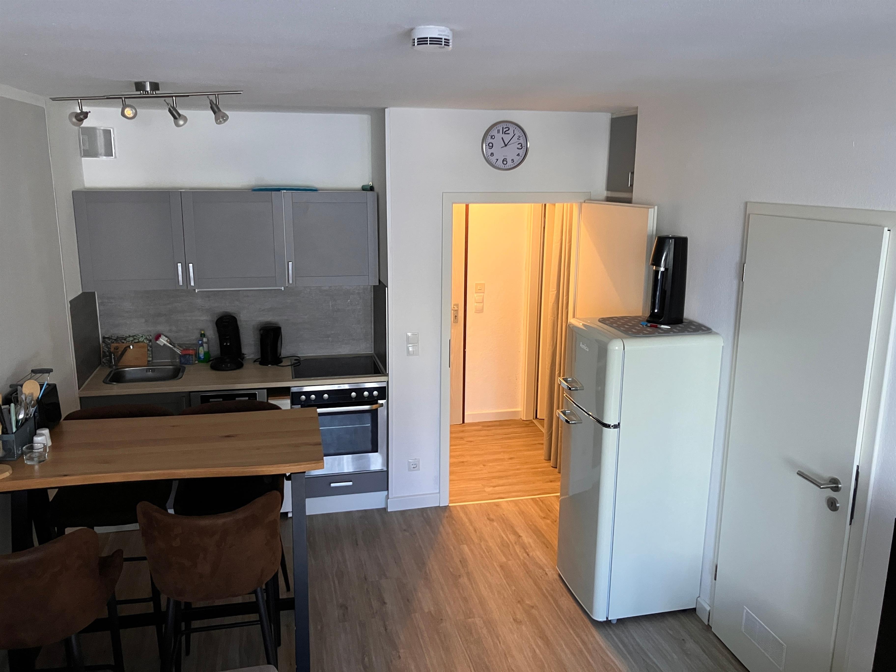 Die Küche ist mit einem Backofen und einem Ceran-Kochfeld ( Keine Induktion ) und einem Geschirrspüler ausgestattet.