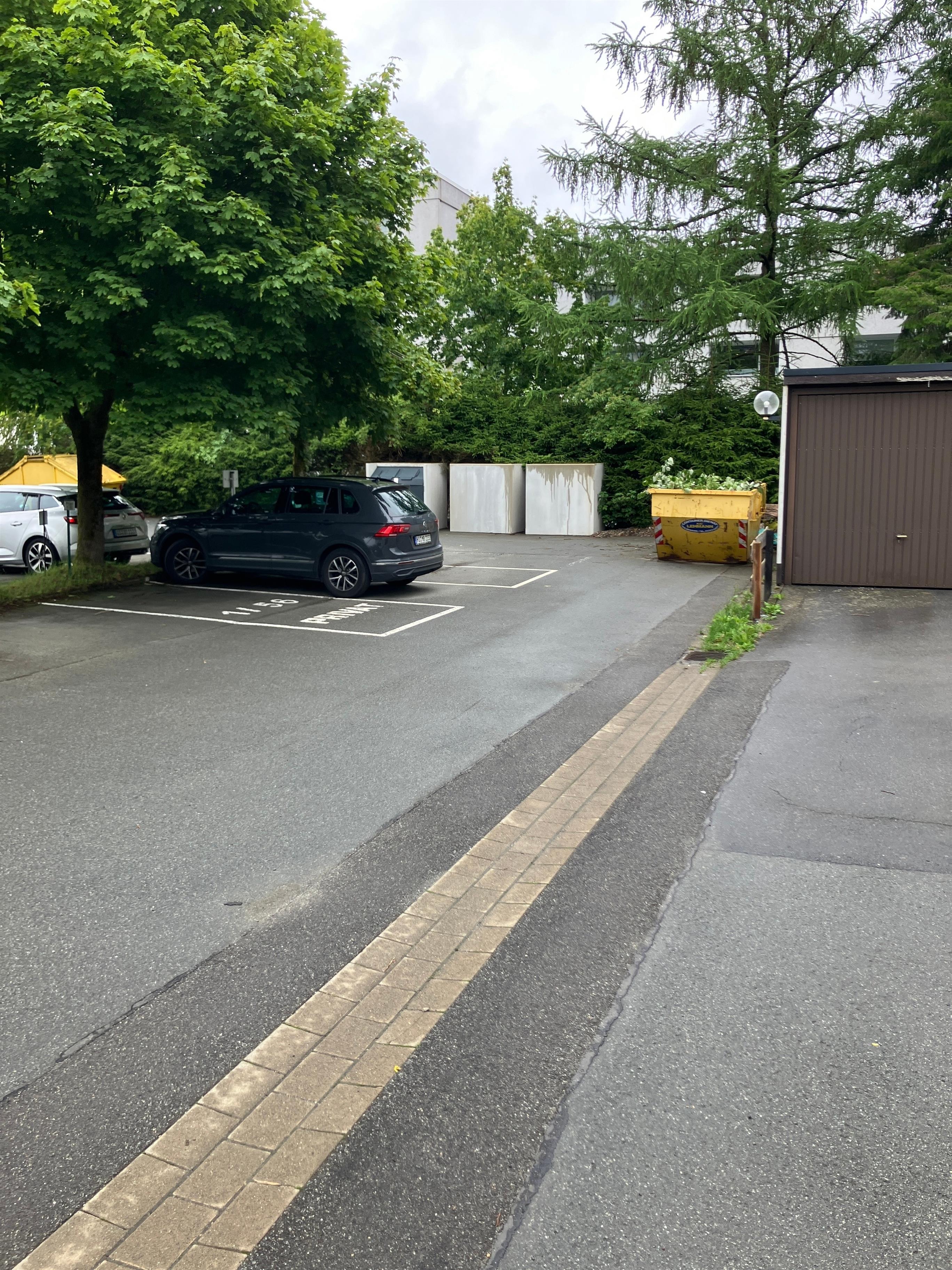 Ein fester Parkplatz gehört nicht zu der Wohnung, es gibt jedoch genügend Parkmöglichkeiten auf dem Gelände und an der Strasse.