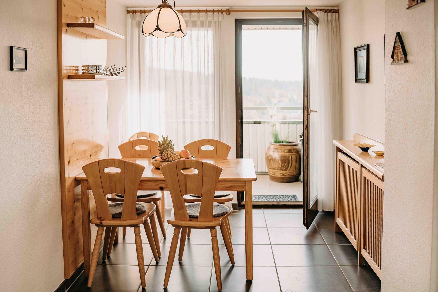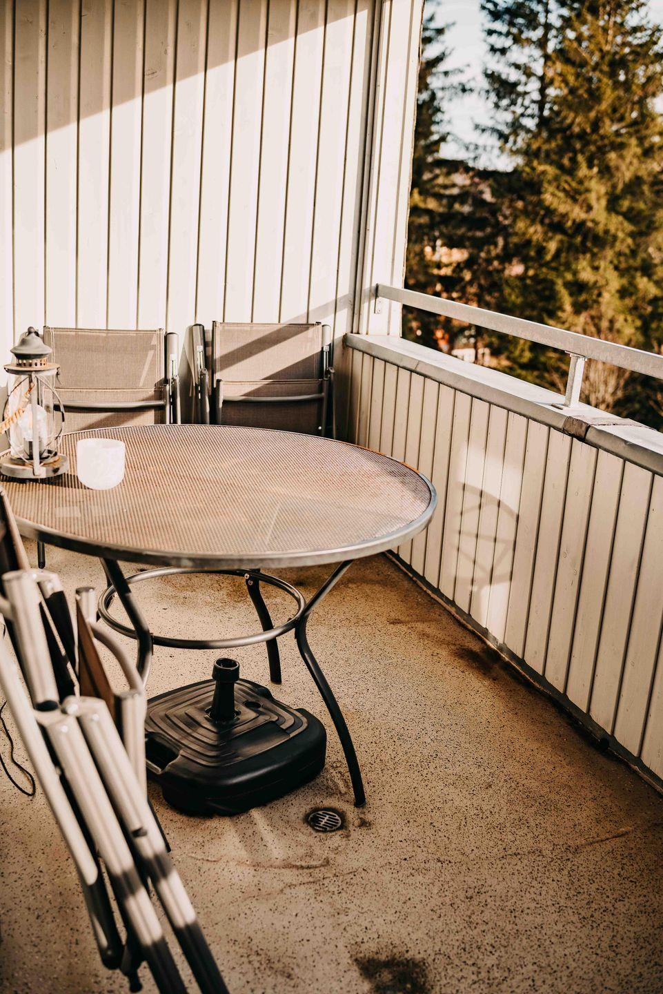Vom erhöhten Essplatz aus hat man Zugang zu einer Loggia. Hier kann man mit einem herrlichen Blick über Hahnenklee bis zur Stabkirche den Tag ausklingen lassen.