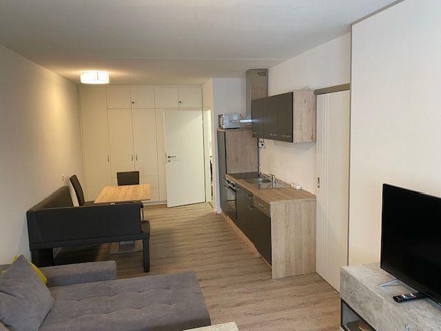 Die gemütliche Sitzecke mit einer ausziehbaren Schlafcouch und Flachbildfernseher sorgt für Entspannung.