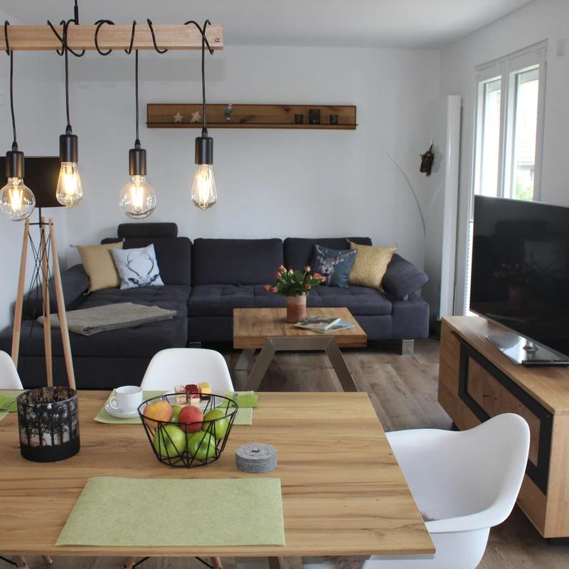 In der Wohnung Hahnenklee erwarten Sie lichtdurchflutete Räumlichkeiten, die mit viel Liebe zum Detail gestaltet sind. Der offene Wohnbereich lädt dazu ein, nach einem erlebnisreichen Tag zu entspannen. Hier finden Sie bequeme Sitzgelegenheiten, in denen Sie die Zeit mit Ihren Liebsten verbringen und den Abend bei einem Glas Wein ausklingen lassen können. Die moderne Küche ist vollständig ausgestattet und bietet Ihnen die Möglichkeit, leckere Mahlzeiten zuzubereiten. Genießen Sie dabei die gesellige Atmosphäre am Esstisch und tauschen Sie sich über die Erlebnisse des Tages aus.