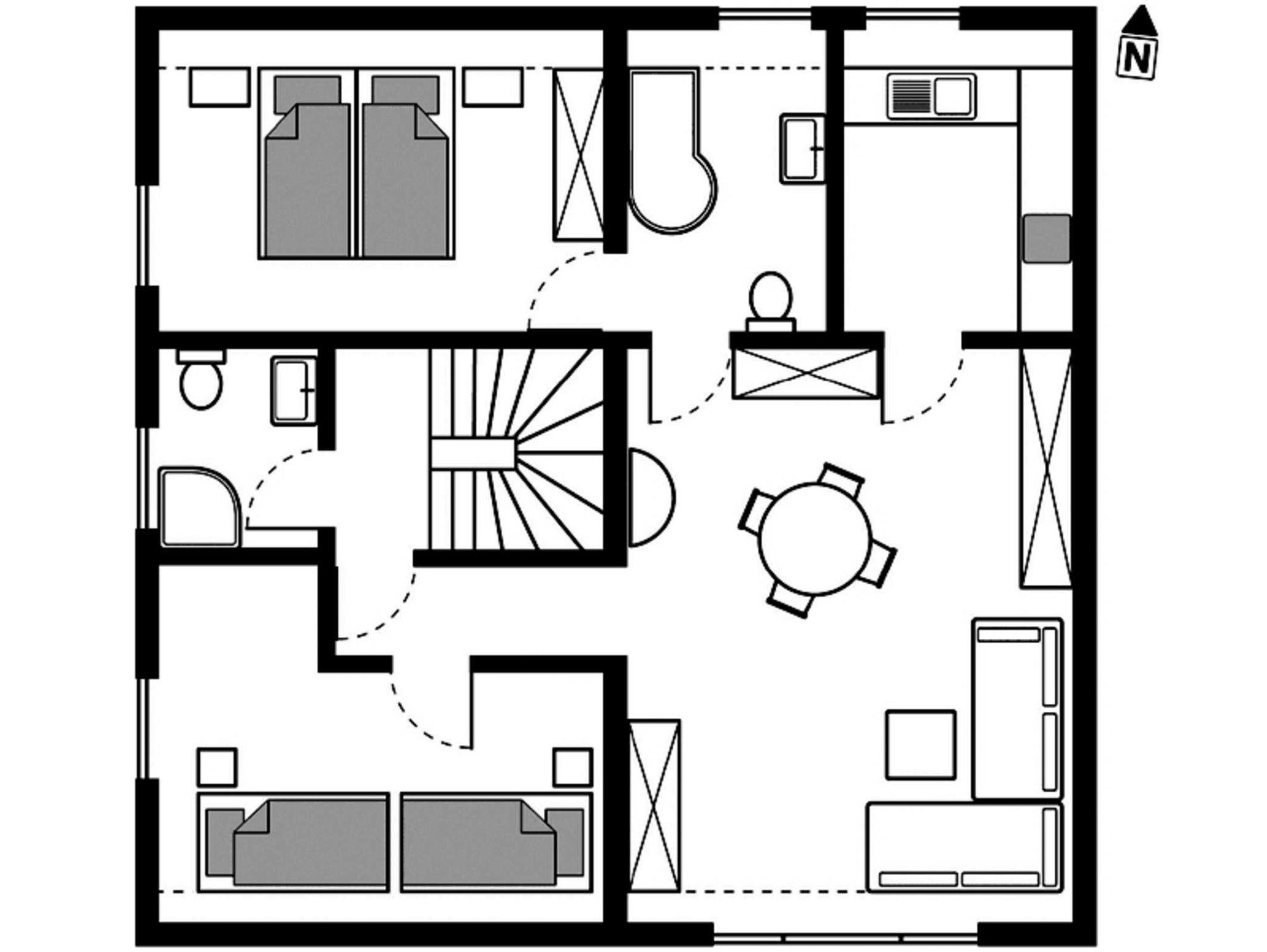 Eingang und Treppenhaus mit der kleinen Garderobe im Erdgeschoß gelangen Sie in die im Obergeschoß befindliche voll- und komfortabel ausgestattete Wohnung. Die Webstube sticht heraus durch liebevolle und harmonisch abgestimmte Einrichtung in jedem Raum, mit Ihrem warmen Holzfussboden, dem Kamin und der hochwertigen Ausstattung. Sie bringt Ihnen gleich das Gefühl eines schönen Urlaubs. Für den weiteren Komfort ist im Dachgeschoß ein Hauswirtschaftsraum mit Waschmaschine, Trockner und Bügelbrett untergebracht.