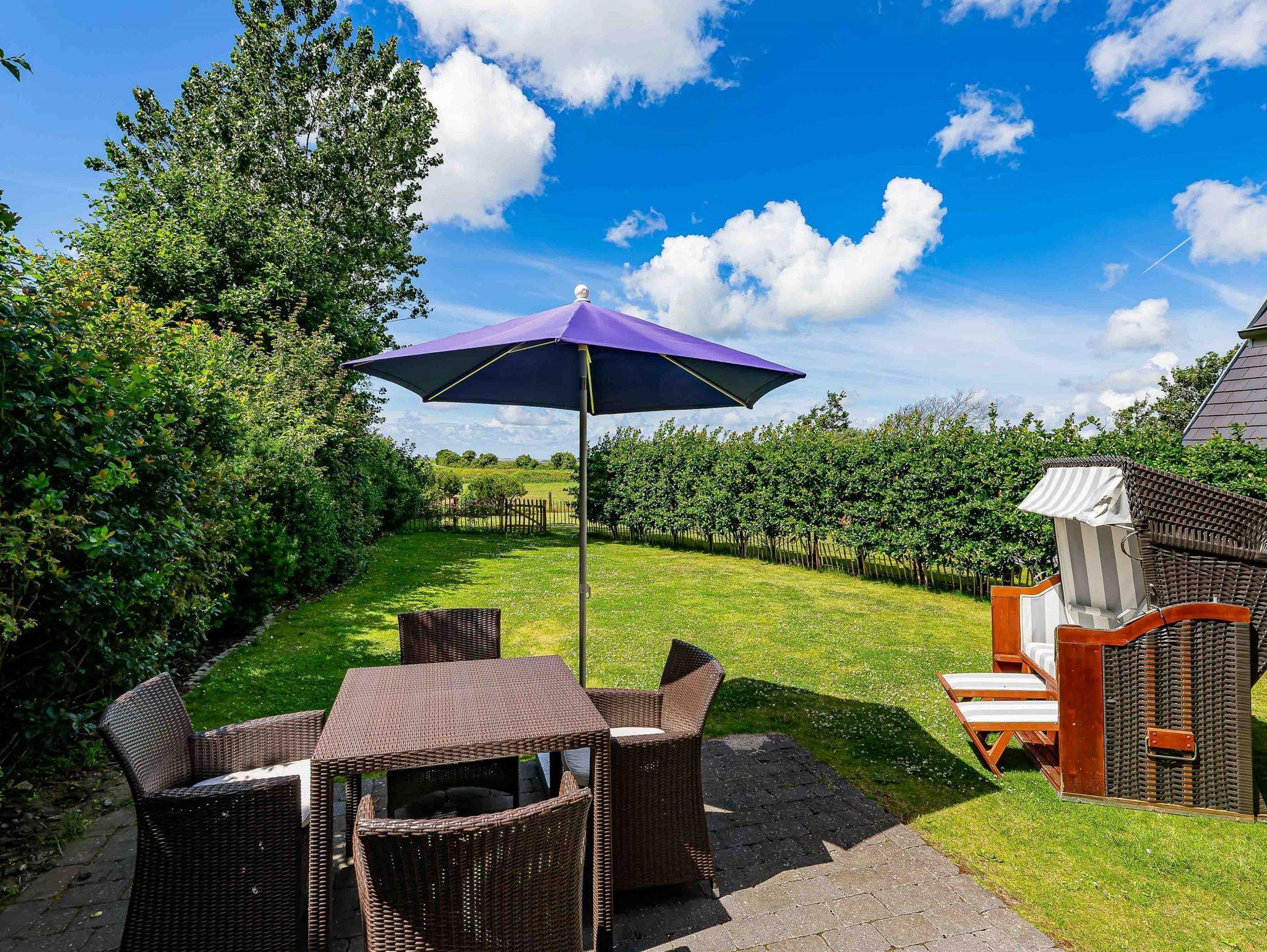 Willkommen im ?Muck?s Blick?.Im ruhigen Nieblumer Ortsteil Goting steht dieses exklusive, aus zwei Wohneinheiten bestehende Ferienhaus. Es gliedert sich in eine Erdgeschoss Wohnung ?Muck?s Blick Ost? und einem Hausteil (EG+OG) ?Muck?s Blick West? auf einem rundum schön gestaltetem Grundstück mit jeweils eigenen sichtgeschützten Garten- und Terrassenbereichen. Der herrlichen Blick über die Wiesen und Felder bis zum Meer läßt richtiges ?Urlaubsfeeling? aufkommen. Die unmittelbare Nähe zum Meer und dem Goting-Kliff zeichnet die Lage des Objektes aus. Das Dorf Nieblum mit ihren Einkaufsmöglichkeiten, Restaurants und Cafés ist in wenigen Gehminuten zu erreichen.