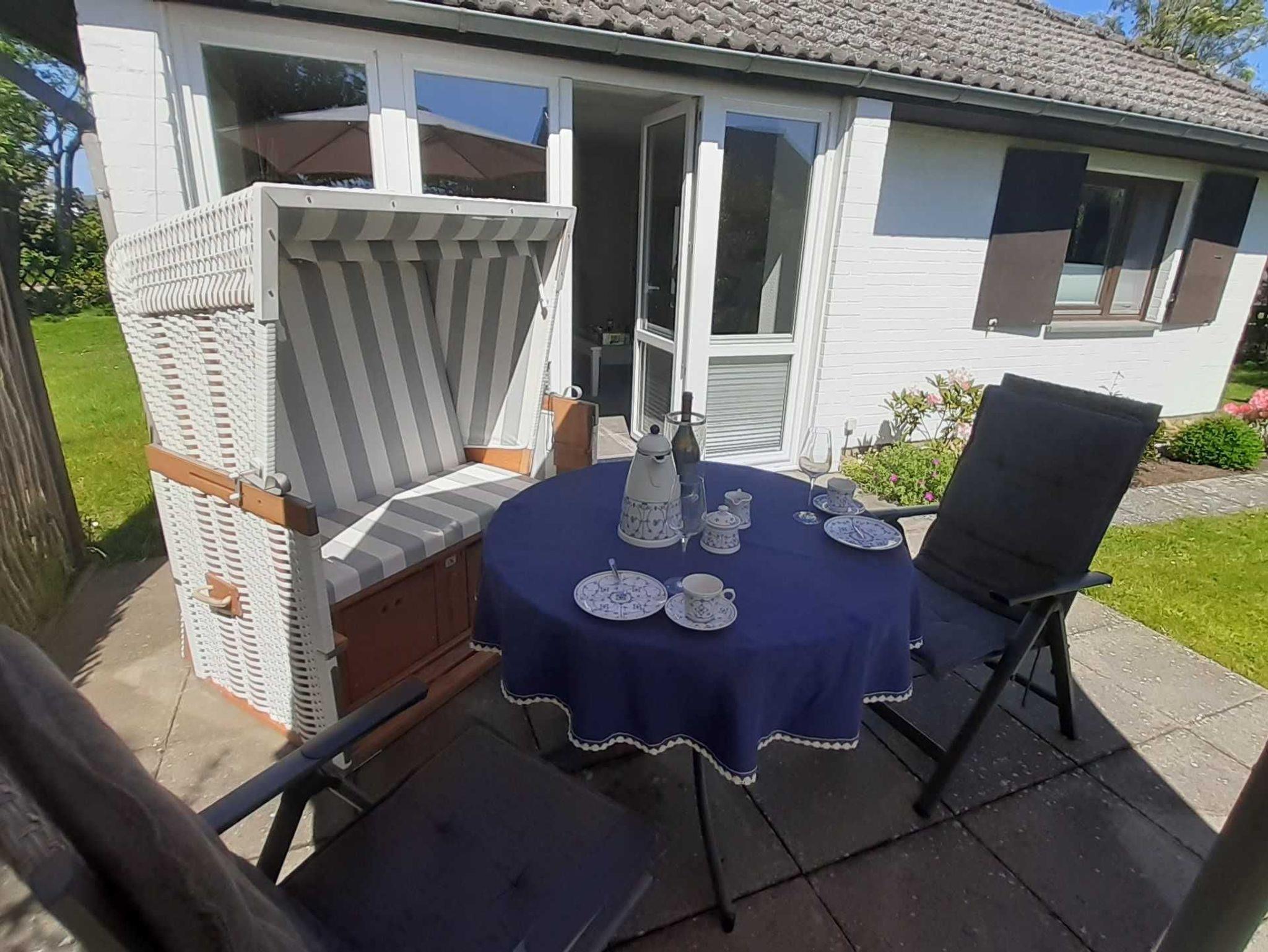 Im Außenbereich befindet sich ein Gartenhäuschen, welches als Unterstellmöglichkeit für E-Bikes genutzt werden kann. Abgerundet wird das Angebot mit einem Strandkorb auf der Terrasse, welcher von April bis Oktober genutzt werden kann, sowie mit einem PKW-Stellplatz auf dem Grundstück. Die Anfahrt erfolgt über die Straße Thingwai.