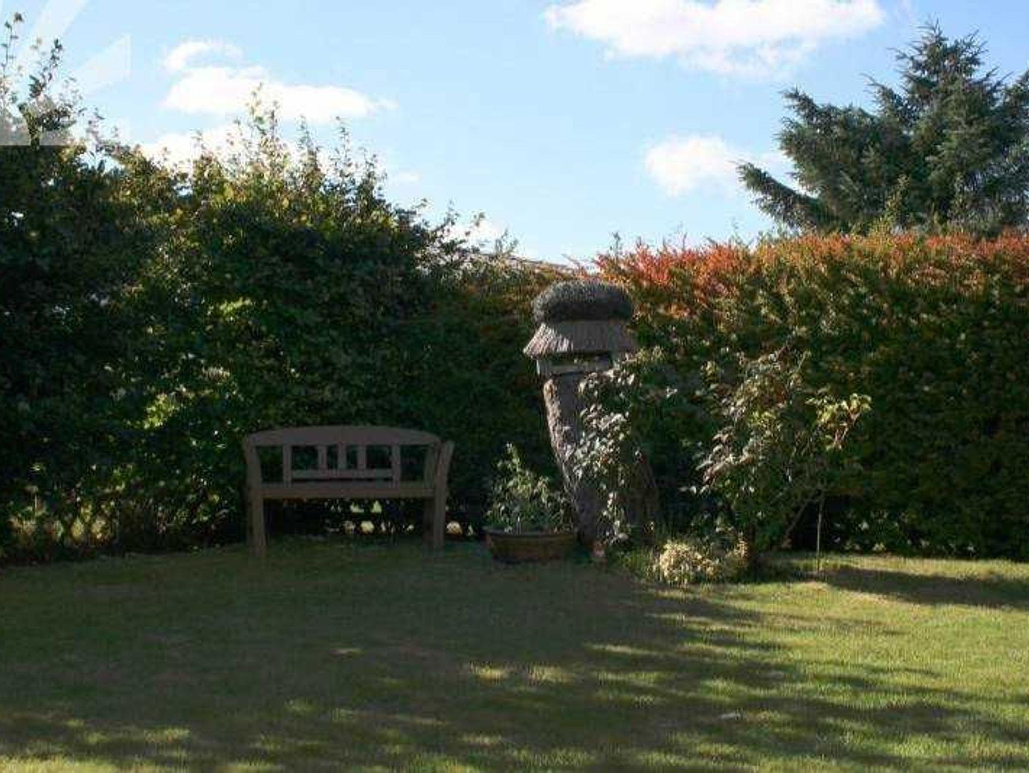 Südlage und drei Minuten Fußweg zum Strand, 400 qm Garten in geschützter Lage mit Sonnenterrasse.