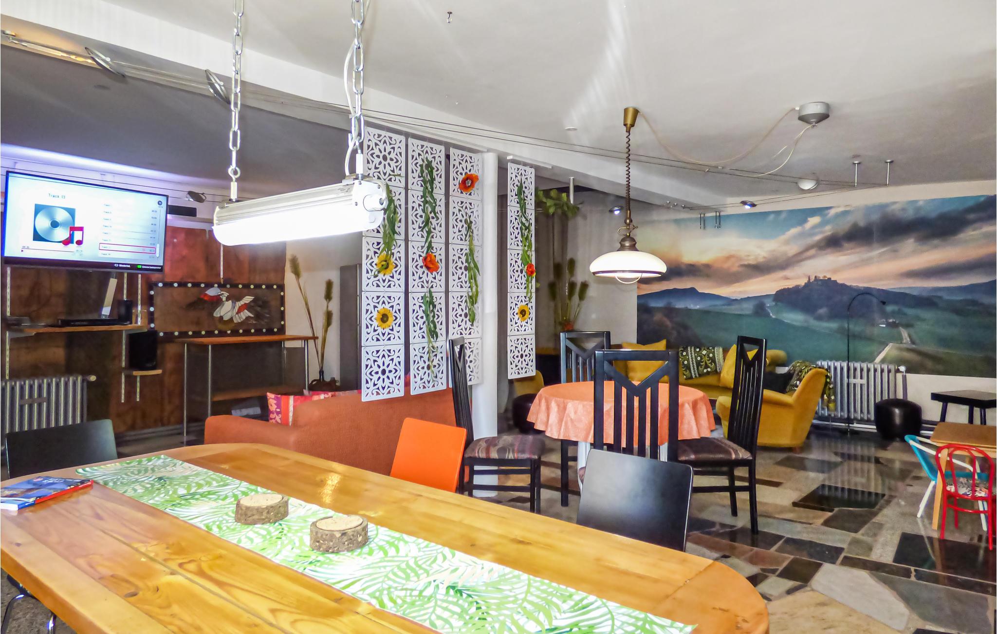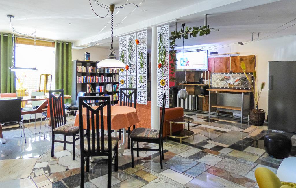 Et stort fællesrum med Smart TV, Dolby Surround-system og Blu-Ray-afspiller sørger for underholdningen. Der er gode møbler at sætte sig til rette i, 3-i-1 spillebord, legeplads for børn og et ekstra køleskab samt en bogreol og cd'er. Den hyggelige bar og gårdhaven er forbundet med fællesrummet.