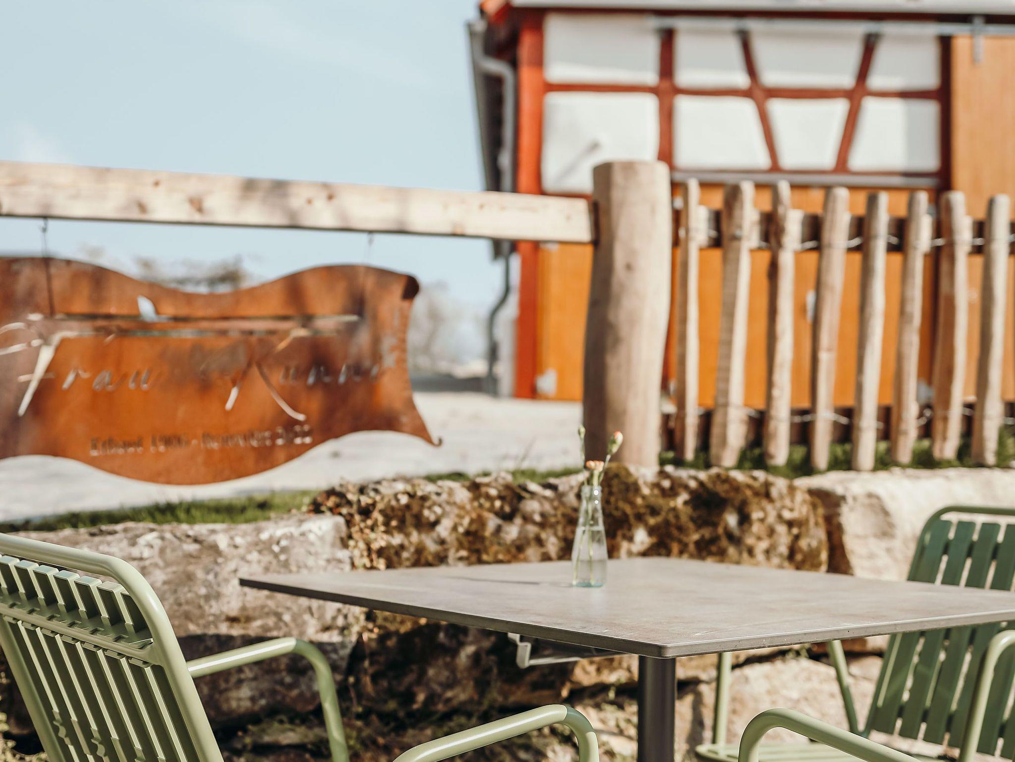 Im Sommer laden Außensitzplätze, ein kleiner Spielplatz und lauschige Plätzchen zum Verweilen ein. Ein Parkplatz sowie eine E-Ladestation sind kostenlos nutzbar.