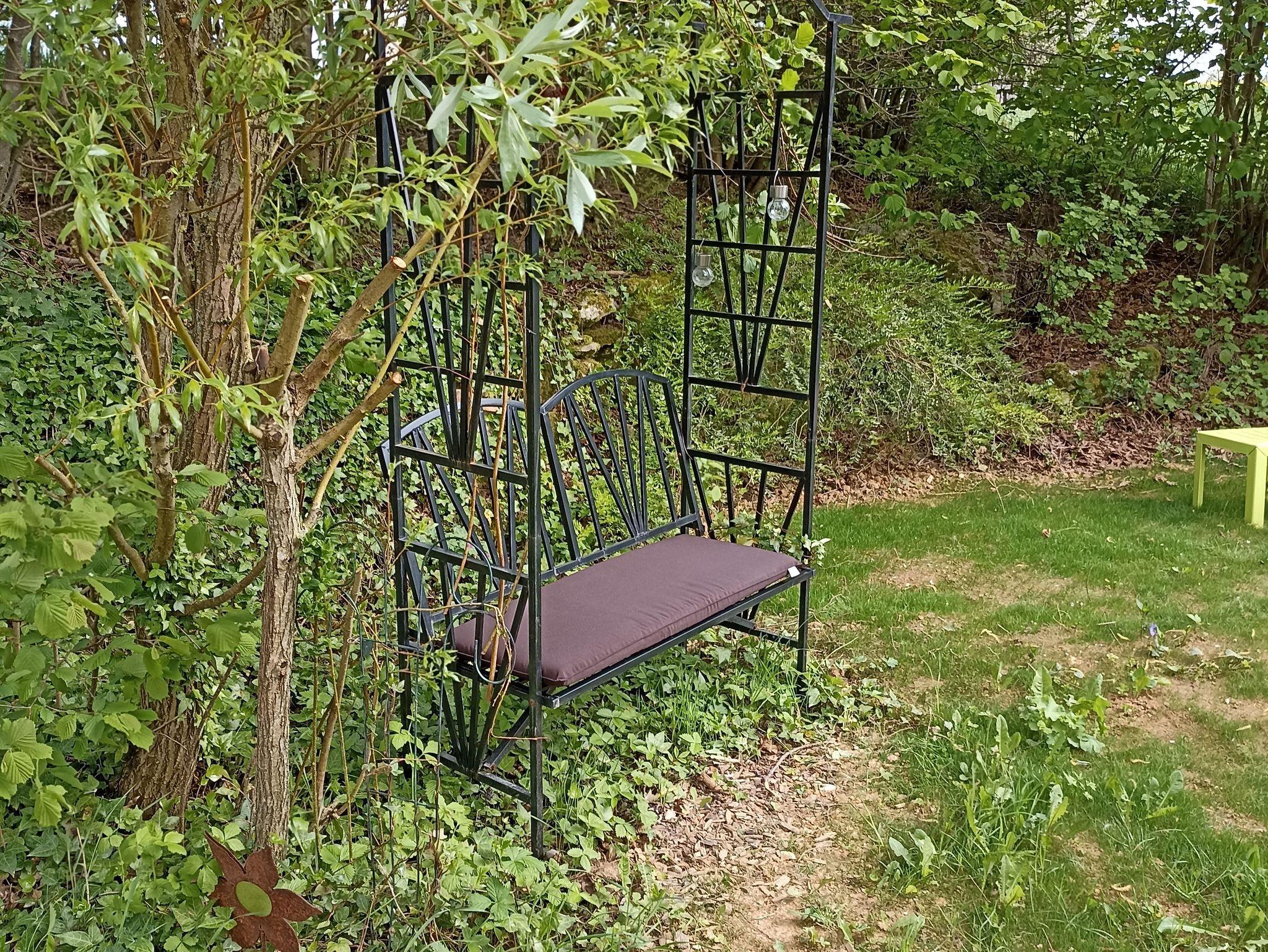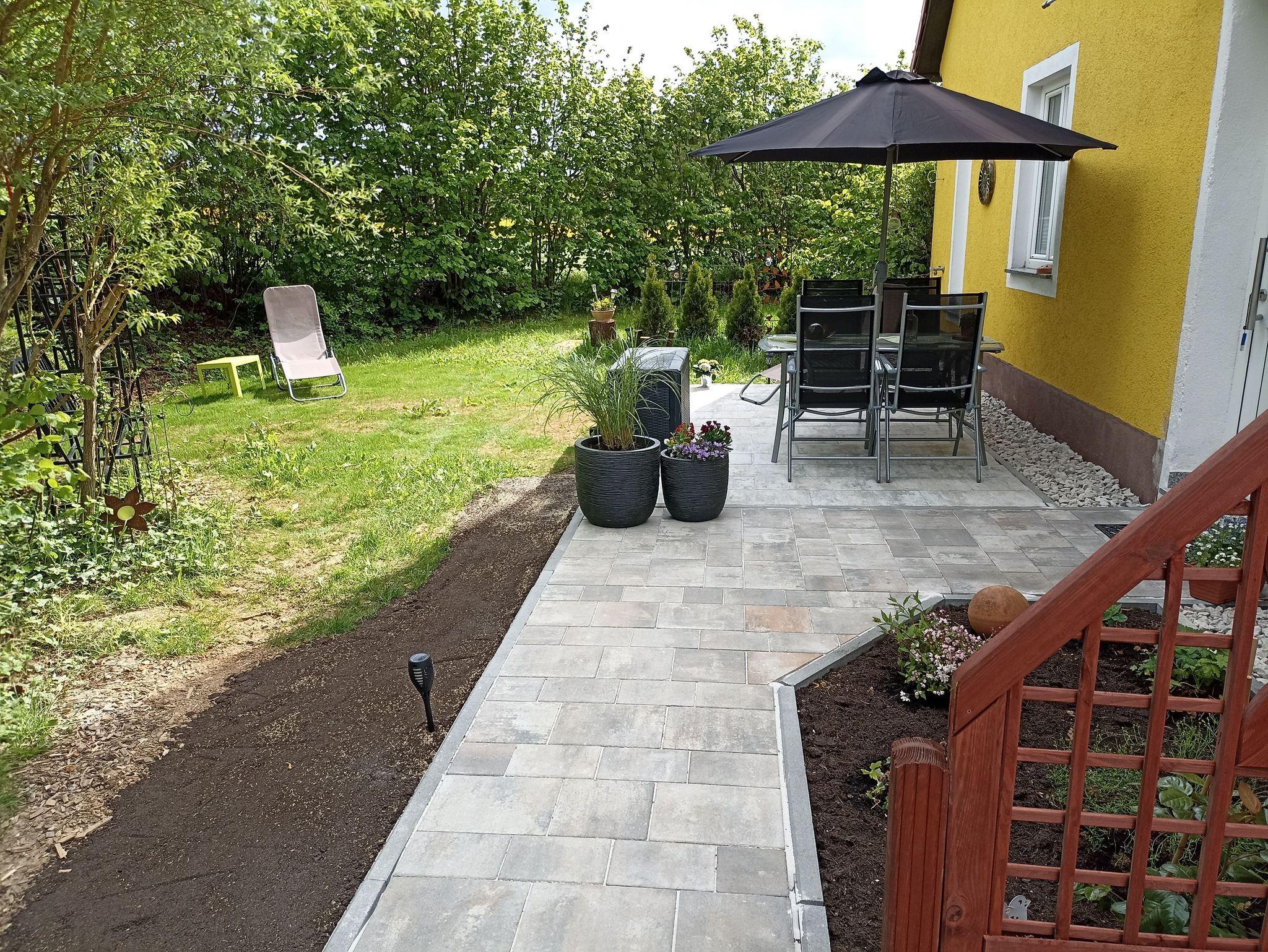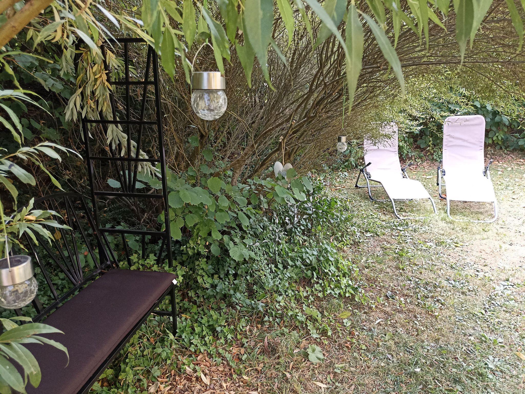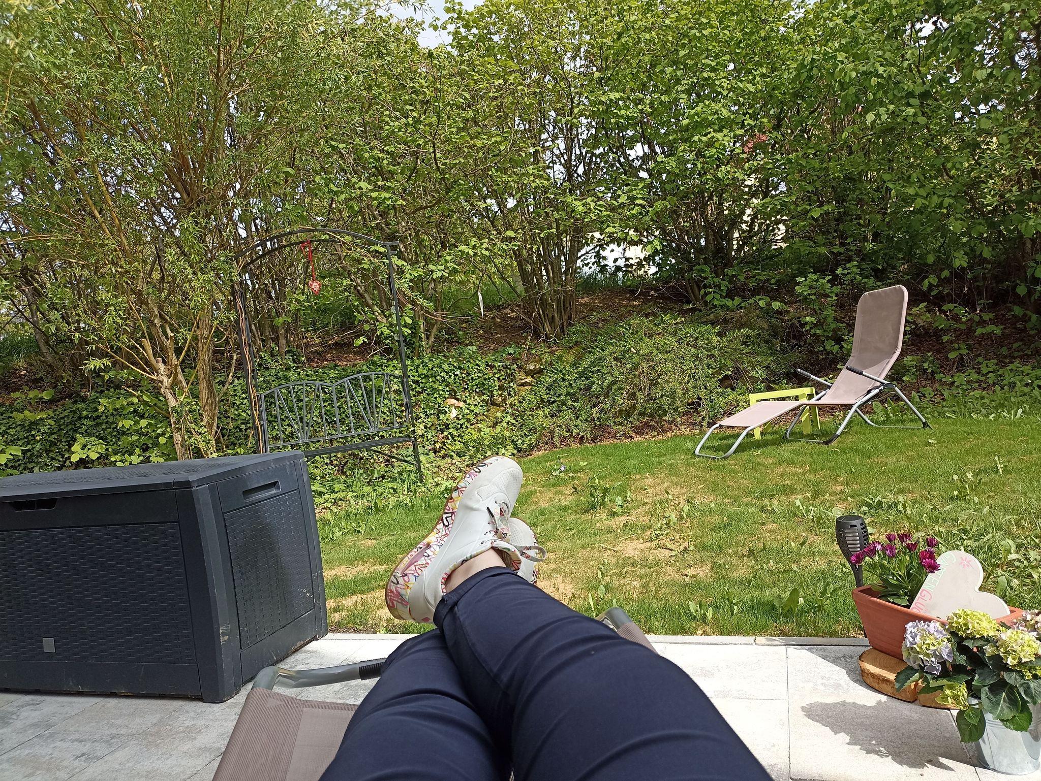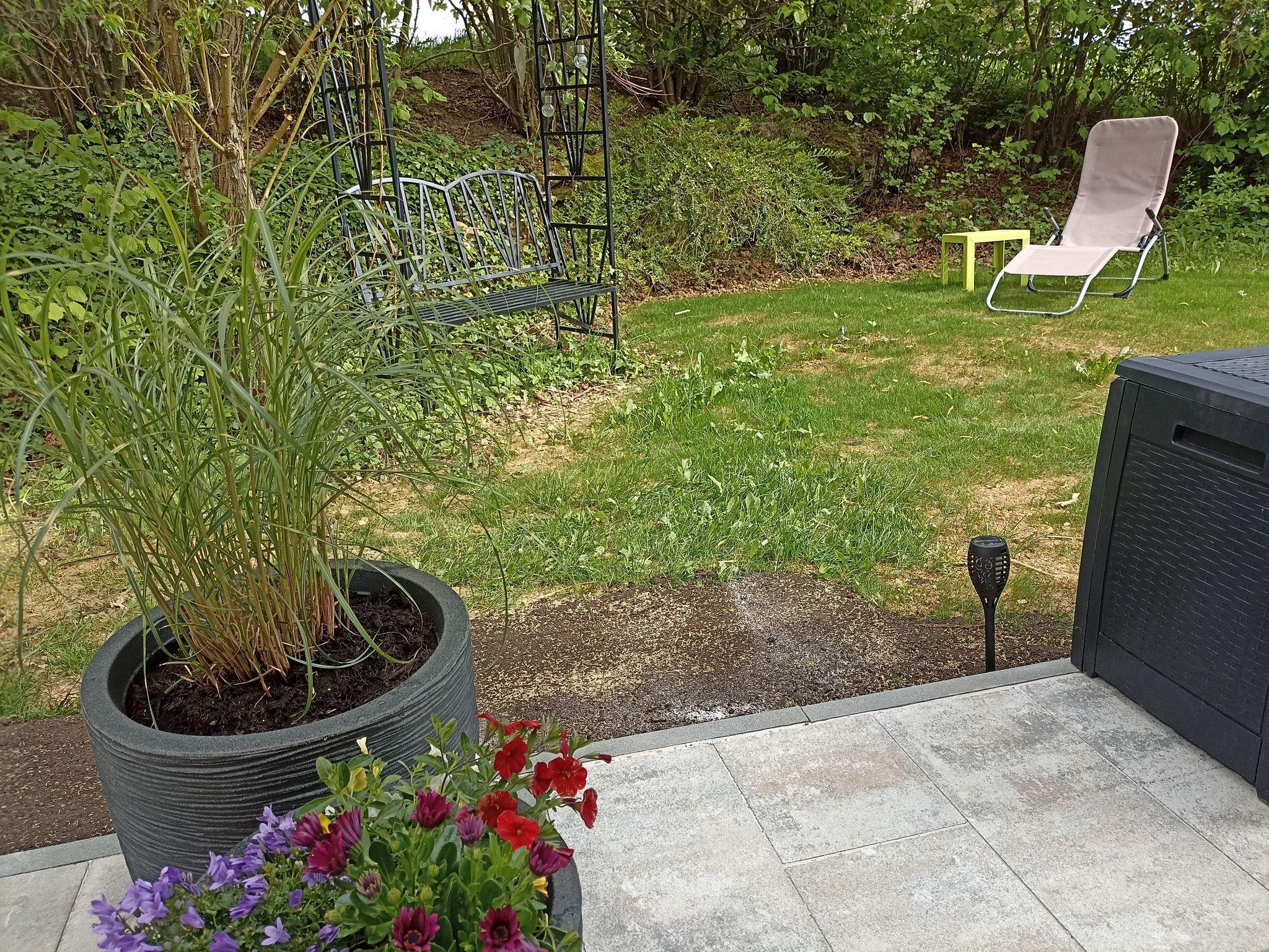 Um gemütlich Draußen sitzen zu können, lädt die abgetrennte Sitzgruppe mit Sonnenschirm, die ausreichend Platz für vier Personen bietet, zum Verweilen ein. Auch ein Stellplatz steht kostenlos für Sie bereit.
