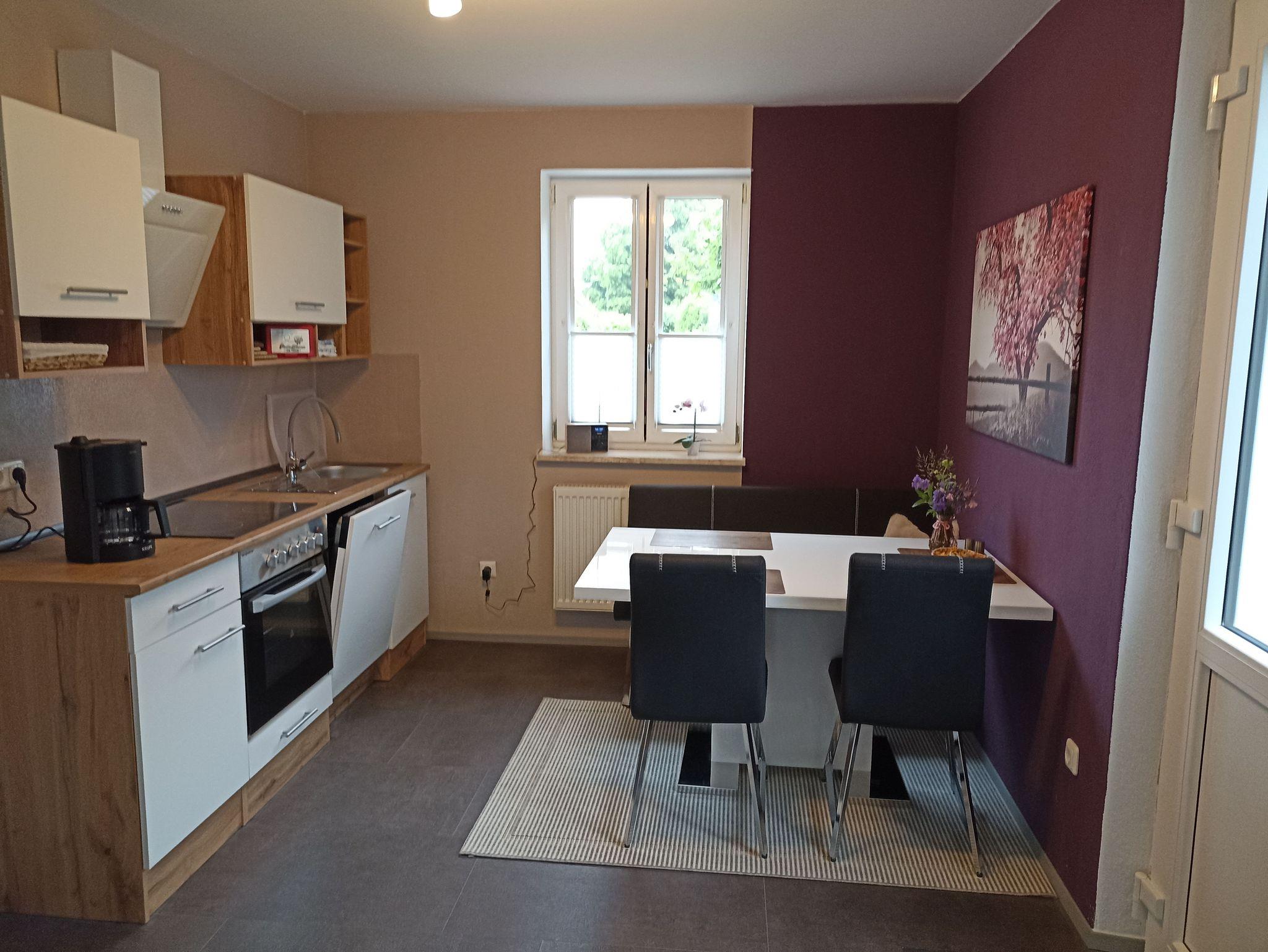 Sie kochen in einer vollausgestatteten Küche (E-Herd mit Cerankochfeld, Geschirrspüler, Kaffeemaschine, Toaster, Eierkocher, Wasserkocher sowie Kühl- und Gefrierkombination), in der es an Aktualität nicht mangelt. Im gemütlichen Essbereich können Sie auf einer geruhsamen Sitzecke, die Platz für vier Personen bereithält, jegliche Mahlzeiten zu sich nehmen.