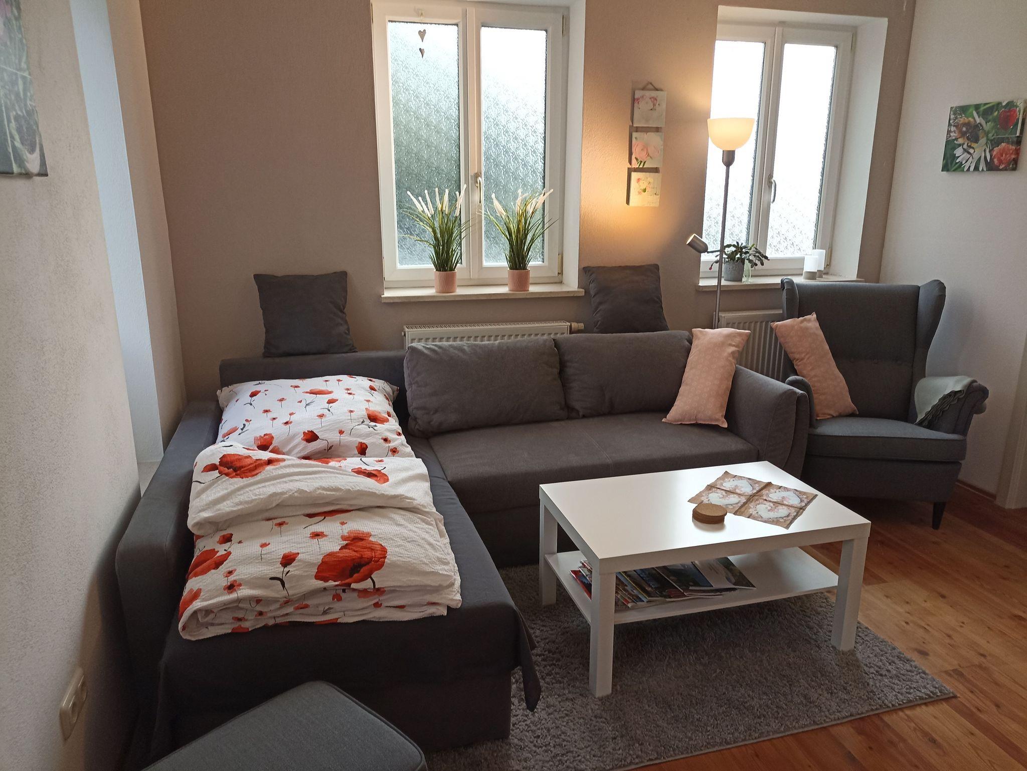 Ein TV-Flachbildschirm sowie ein DAB-Radio bieten dauerhafte Unterhaltung. Selbstverständlich verfügt die gesamte Wohnung über ein kostenfreies WIFI. Im Wohnzimmer kann das Sofa zur Schlafcouch umfunktioniert werden. Dieses eignet sich gut für 2 Kinder, zur Not haben aber auch 2 Erwachsene Platz darauf.