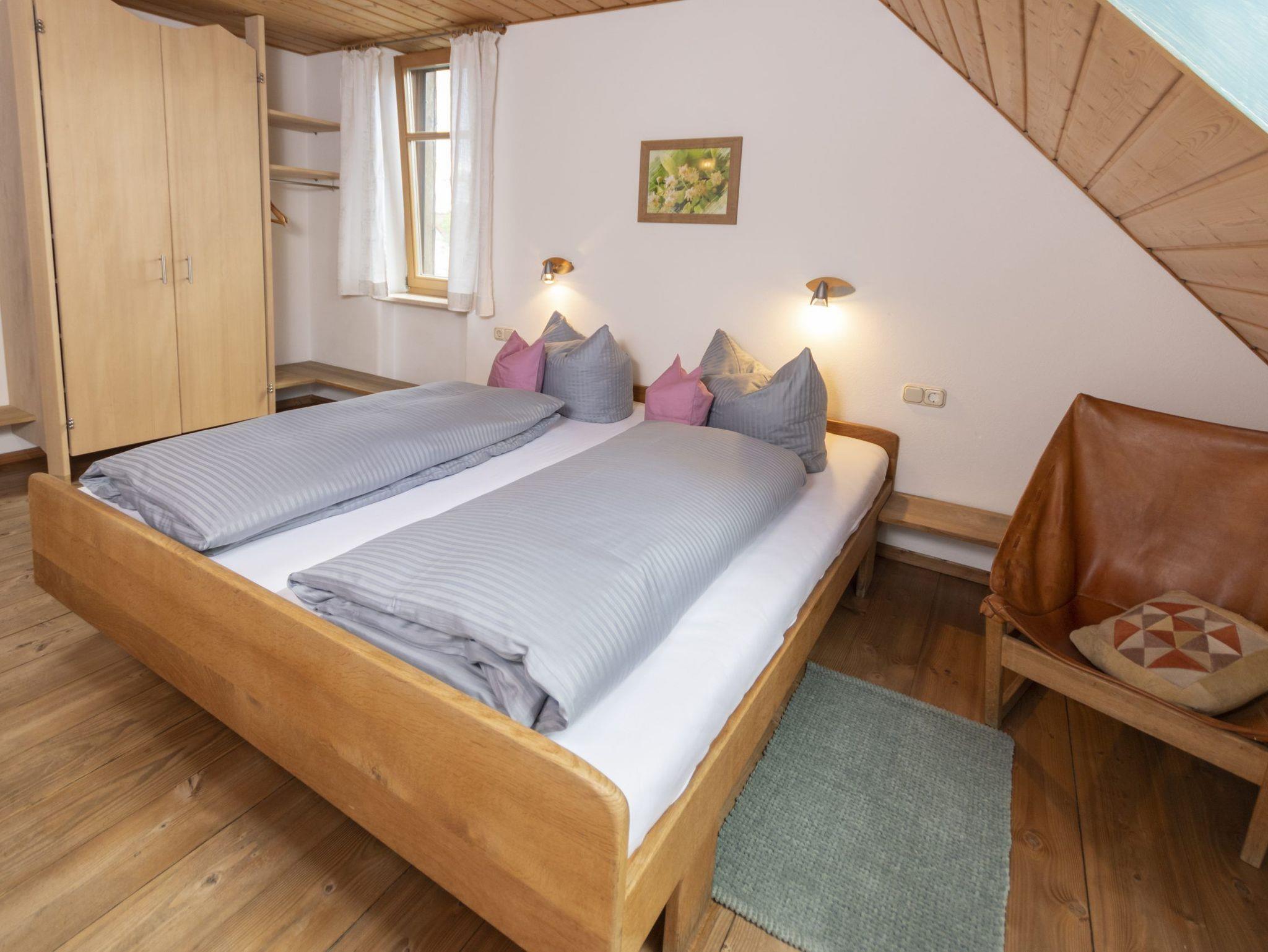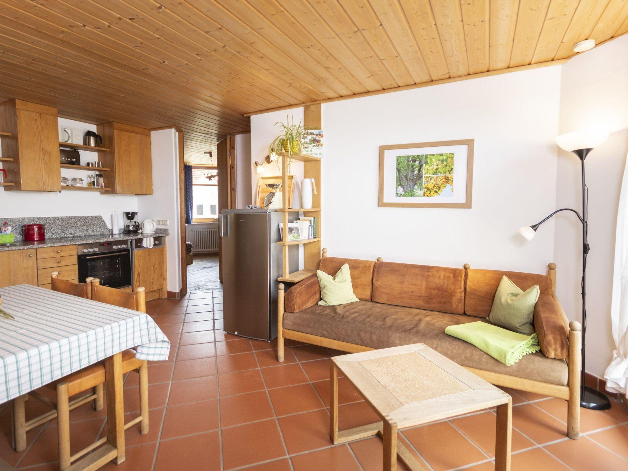 Unsere Ferienwohnung ?Lindentraum? befindet sich im ersten Stock des Gästehauses und umfasst 55m². Sie hat 2 Schlafzimmer (Elternschlafzimmer, Kinderzimmer) und einen Südbalkon mit traumhaftem Blick über unseren Obstgarten.