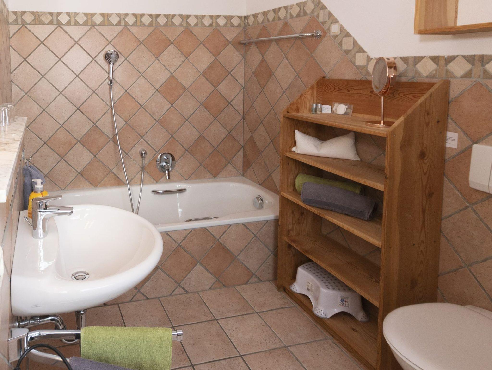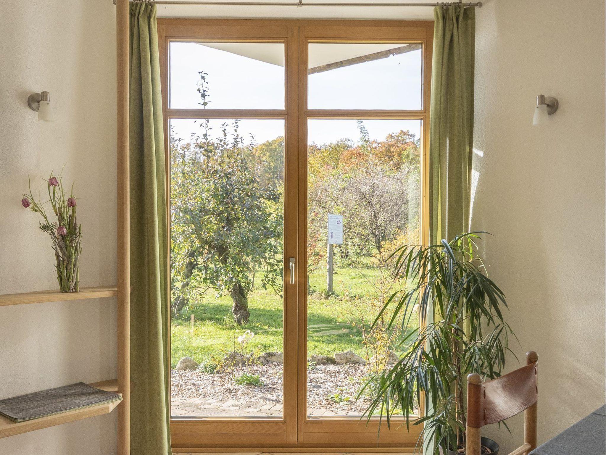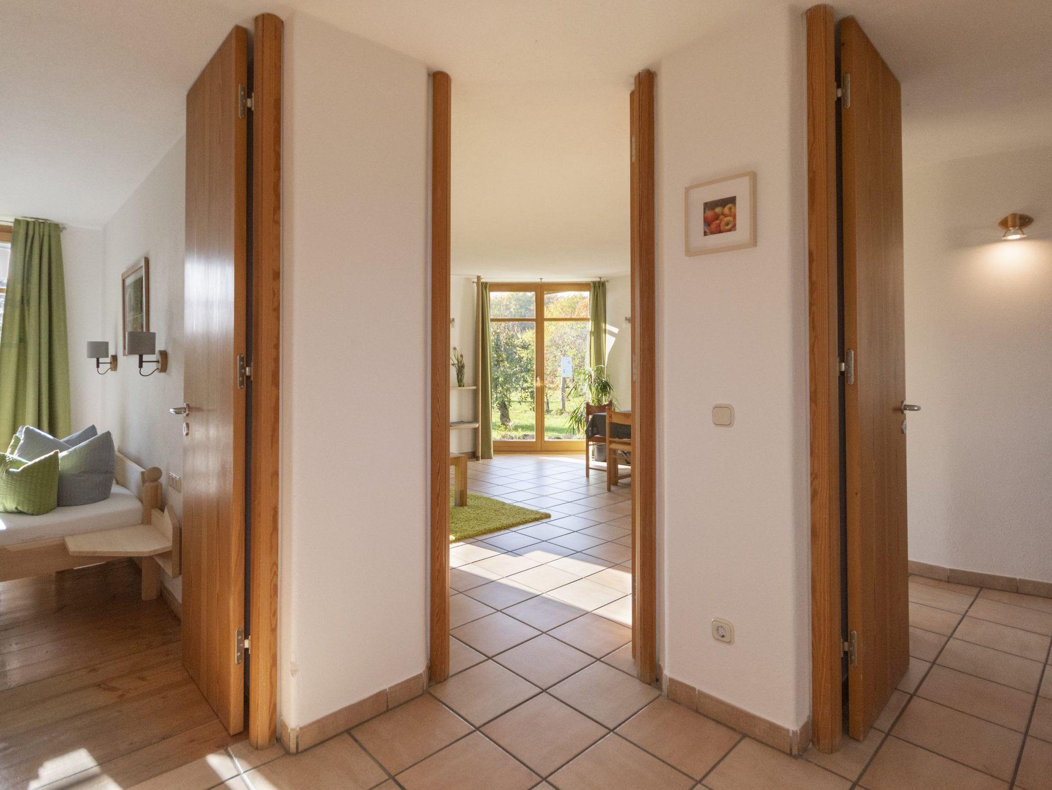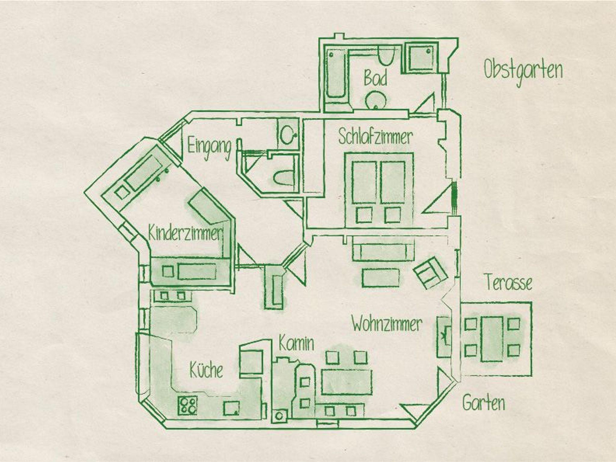 Unsere Wohnung „Obstgarten“ befindet sich im EG des Gästehauses. Sie bietet Ihnen neben einem traumhaften Blick auch den direkten Zugang in unseren Obstgarten. Die überdachte Terrasse und der kleine eigene Gartenanteil lassen Sie Natur pur erleben. Die Wohnung verfügt über eine abgetrennte Küche, ein großzügiges Wohn-Esszimmer, Schlafzimmer, Kinderzimmer, Bad (mit Dusche, Wanne und WC) sowie ein extra WC im Eingangsbereich. An kalten Tage genießen Sie bei wohliger Wärme des schicken Kachelofens gemütliche Stunden auf der Ofenbank.