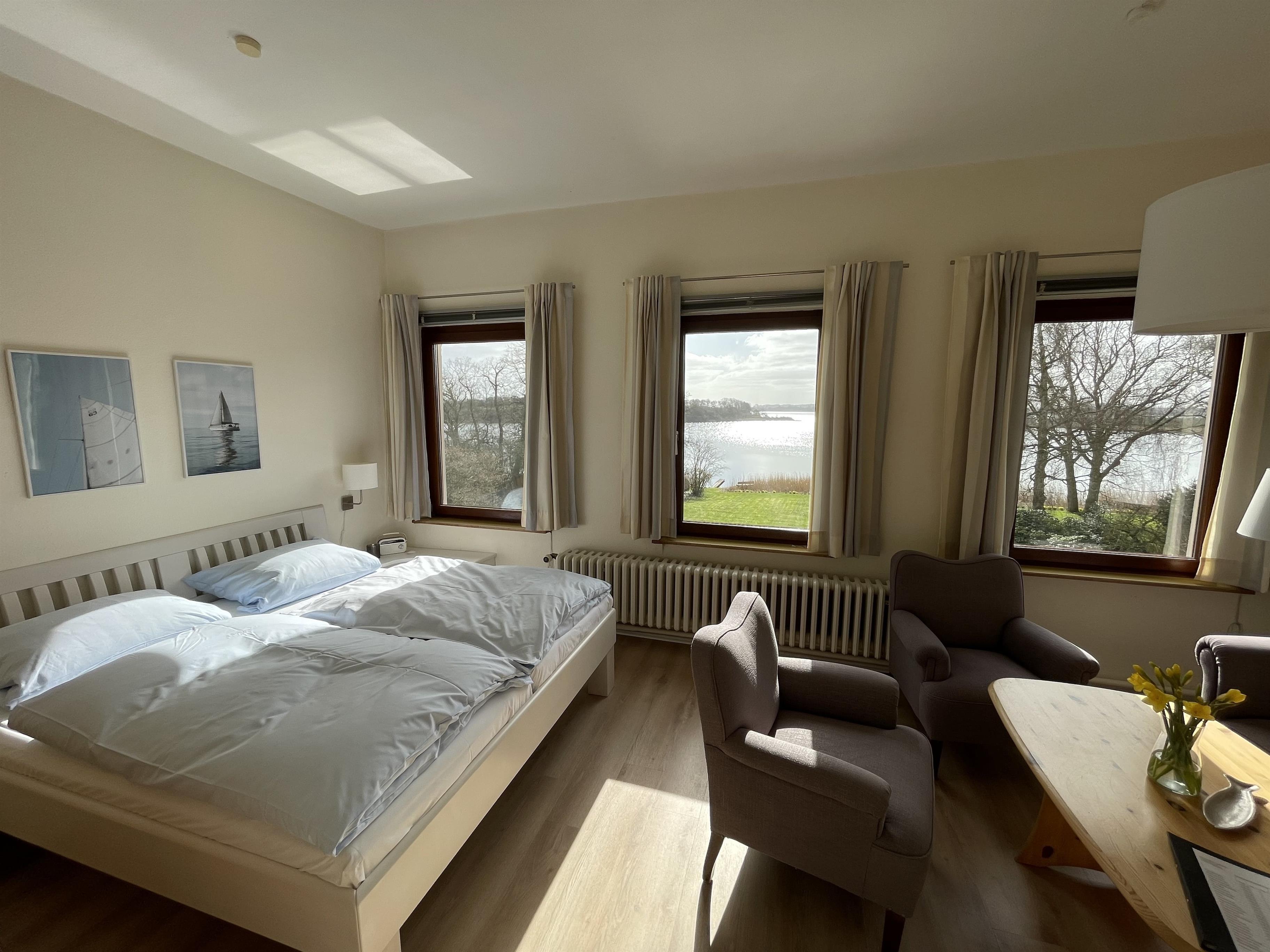 Die Ferienwohnung 2 befindet sich in der ersten Etage unseres Wohnhauses auf einem vollbewirtschafteten Bauernhof direkt am wunderschönen Ostseefjord Schlei. Unsere kleinste Wohnung mit einem kombinierten Wohn-/ Schlafraum ist für 2 Personen ausgelegt und außerdem die beliebteste Wohnung, da sie aus den 3 Fenstern direkt auf die Schlei sehen können. Die Wohnung verfügt über ein Doppelbett, eine Sitzgruppe, eine Küche und ein Badezimmer mit Dusche.