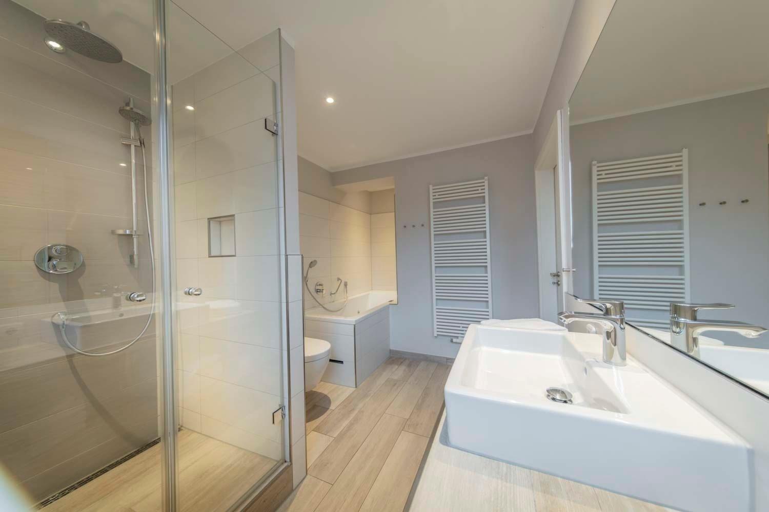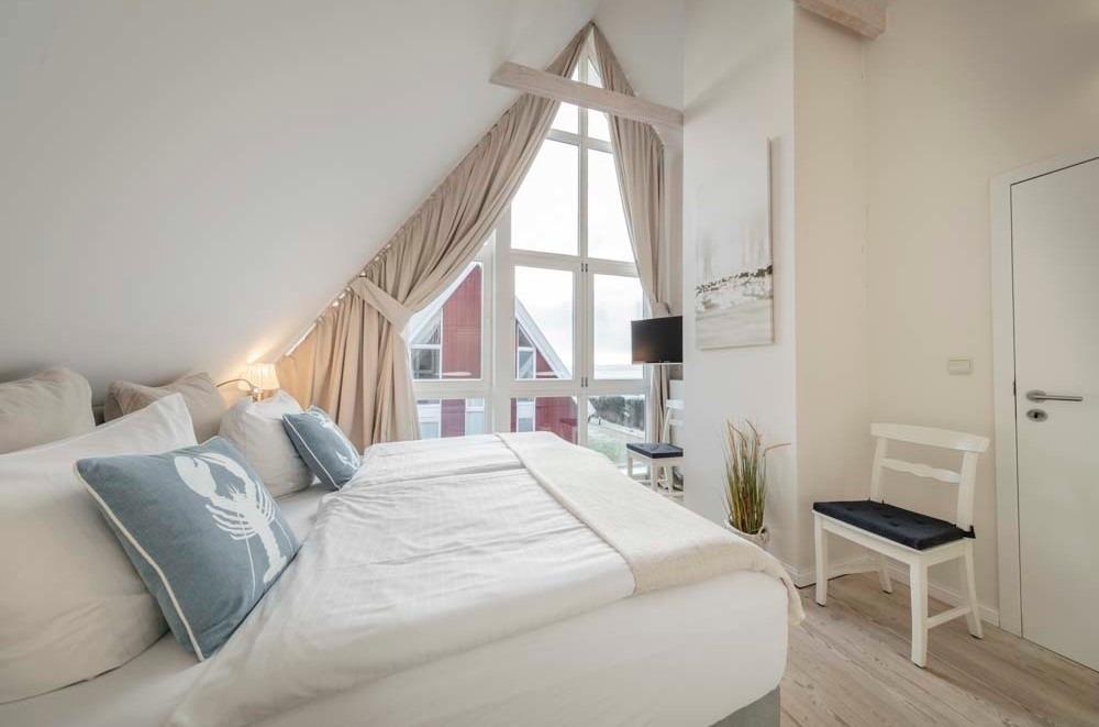 Im Wave gibt es zwei Schlafzimmer im Dachgeschoss, jeweils mit Doppelbett.Die gemütlichen Boxspringbetten vereinen Design und hohen Schlafkomfort.