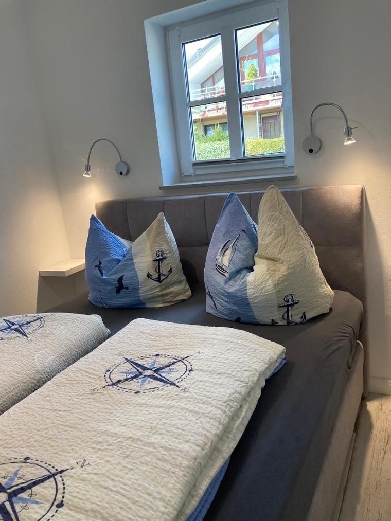 In zwei von den drei Schlafräumen befinden sich jeweils 160er Boxspringbetten, Im kleinen Kinderzimmer steht ein Stockbett (0,80m x 1,90m), eine zusätzliche Schlafmöglichkeit durch ein Einzelbett (ca.0,8 m x 1,90m).