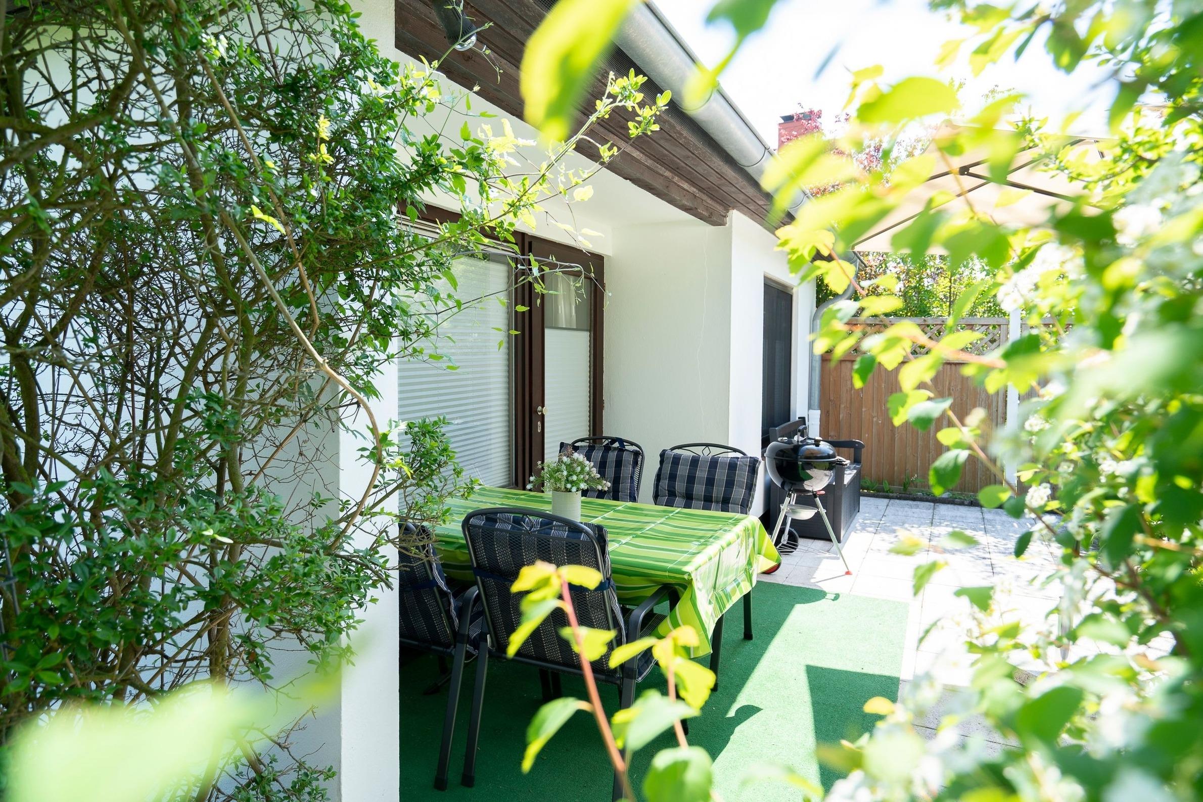 In der Wohnung gibt es ein Wohnzimmer sowie zwei separate Schlafzimmer. Ein Schlafzimmer verfügt über ein Doppelbett (2x 90x200 cm, durchgehender Topper), das zweite Schlafzimmer bietet Ihnen ein Etagenbett (je 90x200 cm). Eine kleine gemütliche Küche und ein Badezimmer erwarten Sie ebenfalls. Vom Wohnzimmer aus gelangen Sie direkt auf die sonnige Terrasse und in den großzügigen Garten, der nicht komplett eingezäunt ist. Wenn das Wetter einmal nicht mitspielt, können Sie sich die Zeit mit dem Smart TV im Wohnzimmer vertreiben.