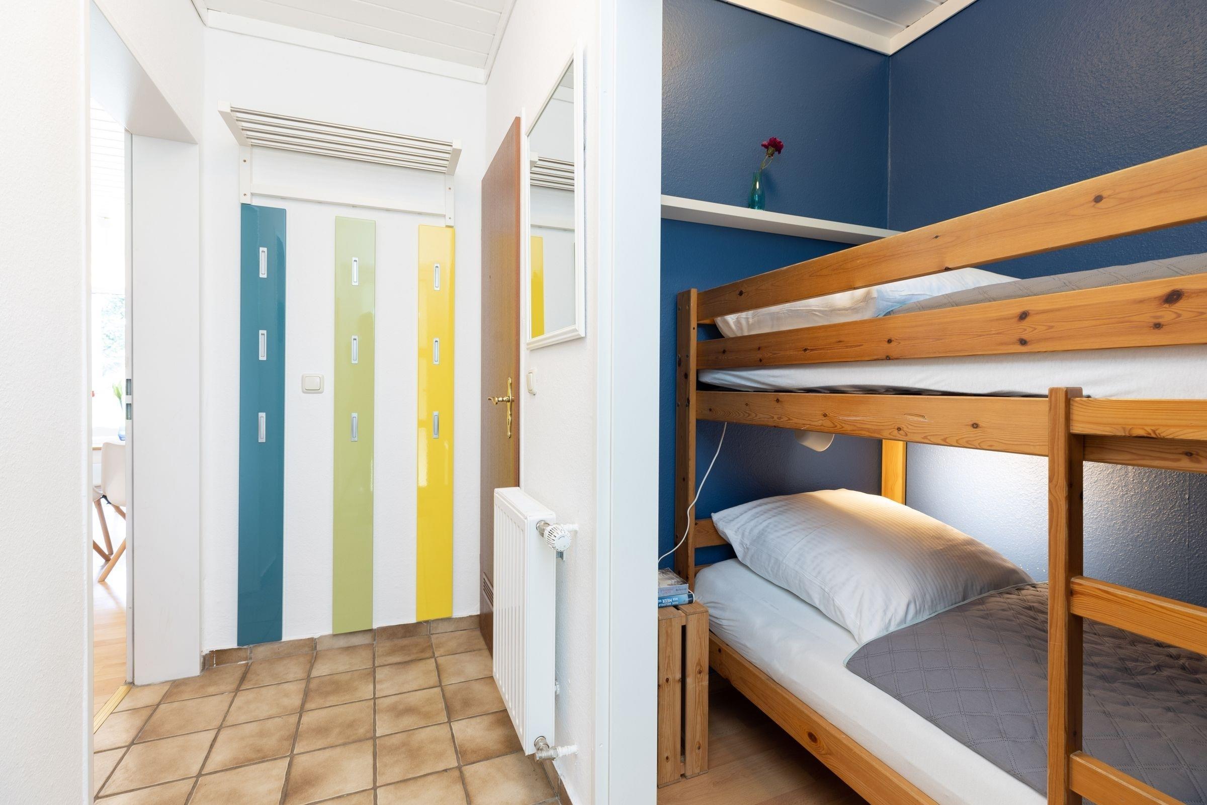 Schlafnische: 1 Etagenbett (je 90x190 cm), Verdunkelung (Plissees)