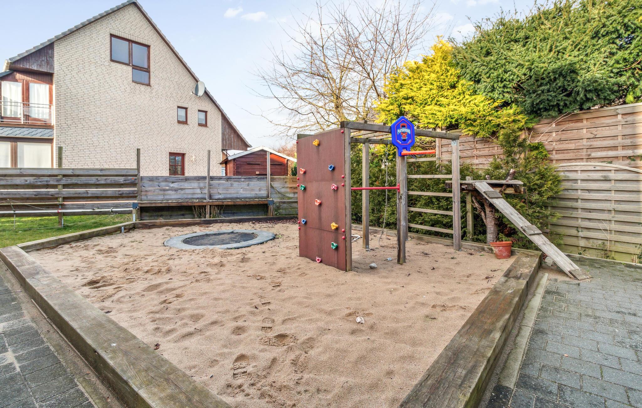 I den indhegnede have inviterer den barrierefri terrasse og flere solrige hjørner til at tilbringe behagelige timer udendørs. Slap af i havemøblerne med en kop kaffe, mens børnene slipper dampen af på klatrestativet eller i den enorme sandkasse.
