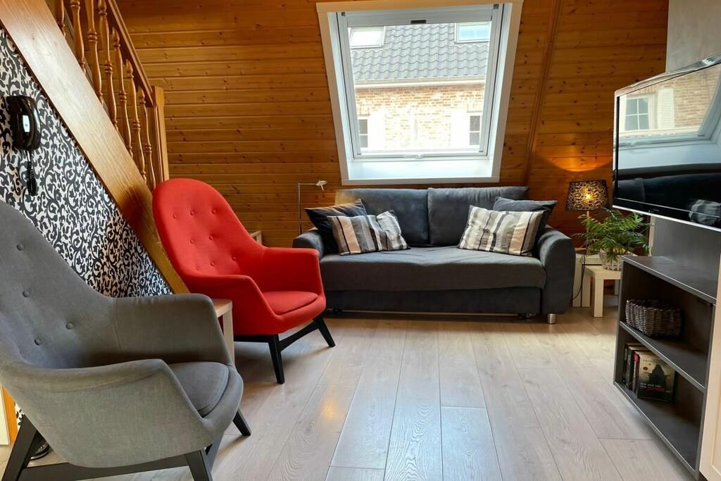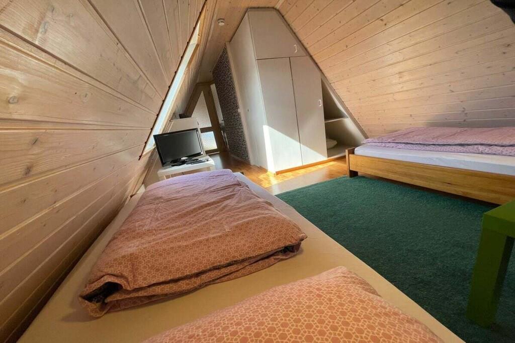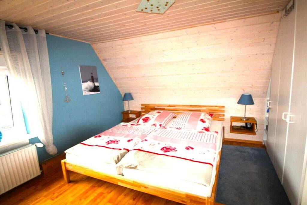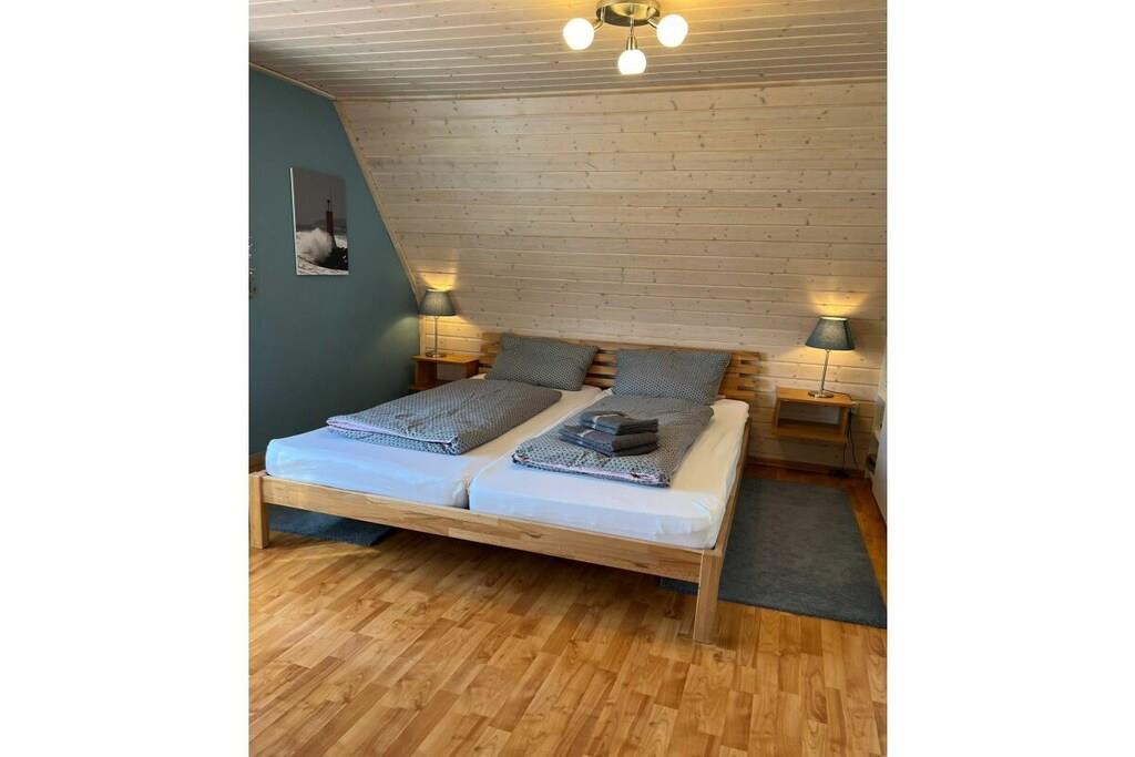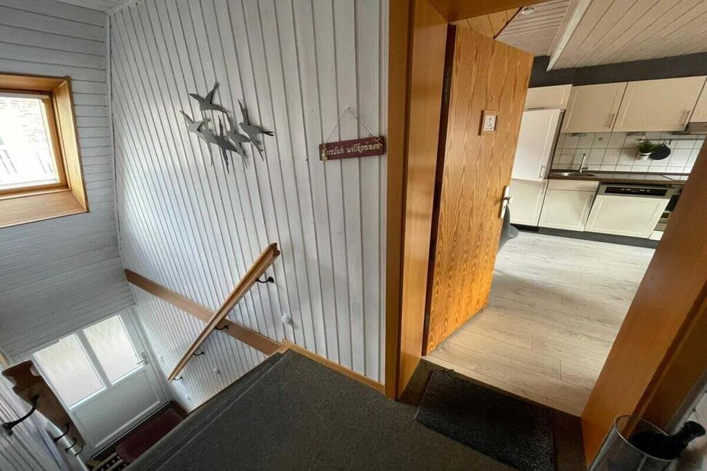 På 1. etage: (stue / spisestue(, , , Fjernsyn, spisebord, radio, CD-afspiller, kogeplade, elkedel, brødrister, kaffemaskine, ovn, mikrobølgeovn, opvaskemaskine , køleskab), soveværelse(, dobbeltseng, Fjernsyn), soveværelse(, enkeltseng, enkeltseng, Fjernsyn)) Loft: (badeværelse(, toilet, håndvask)) , , badeværelse(, toilet, bruser, håndvask), Internetadgang, varme, terrasse(havemøbler, Haveskur)