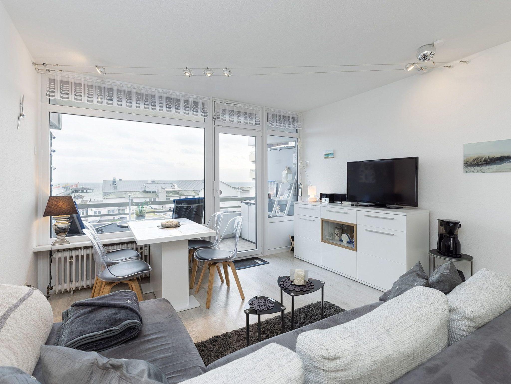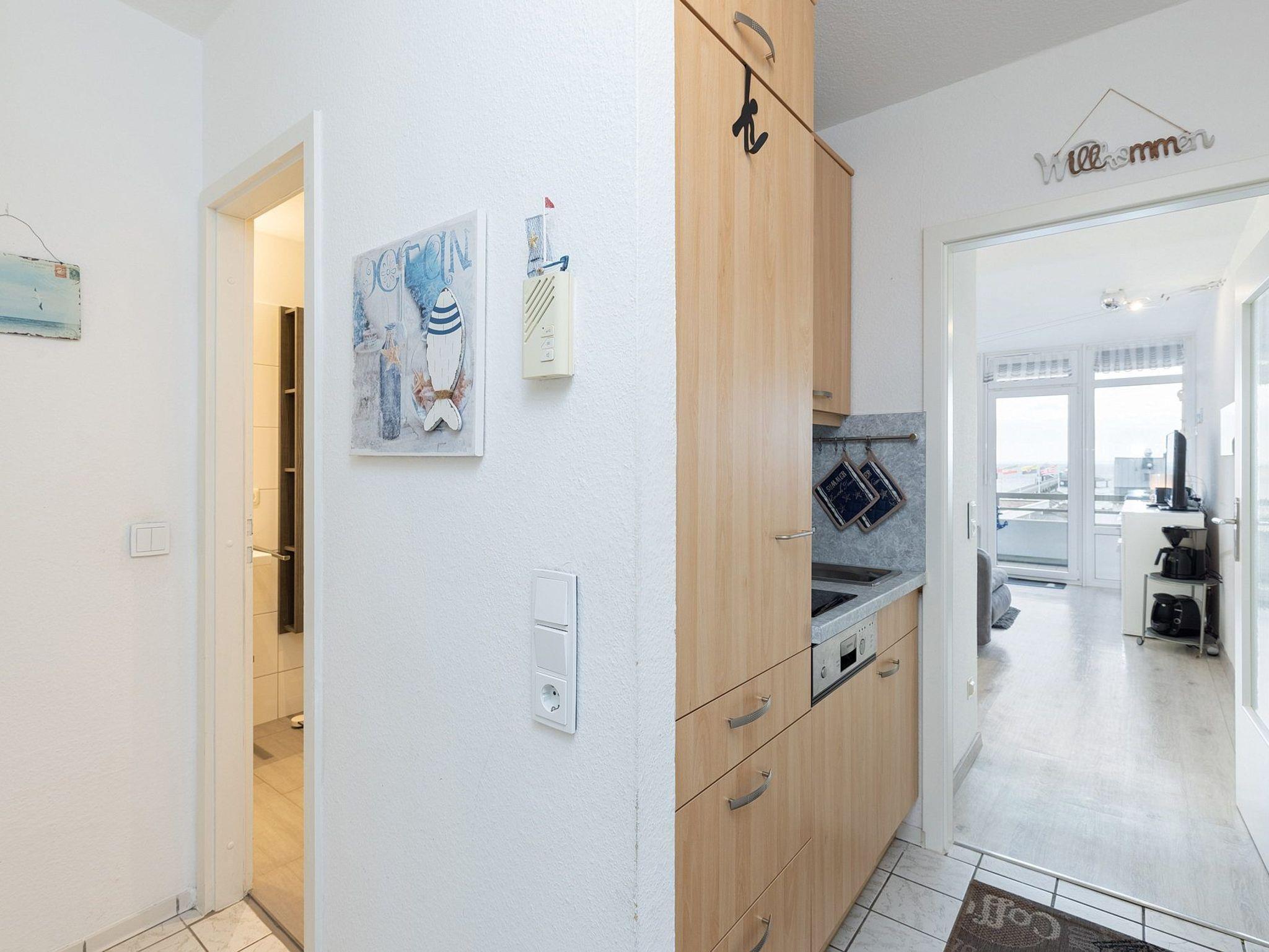 Die Wohnung befindet sich im 4. Stock im Grömitz-Center 2 (Fahrstuhl vorhanden, es führen 4 Stufen zur Wohnung)