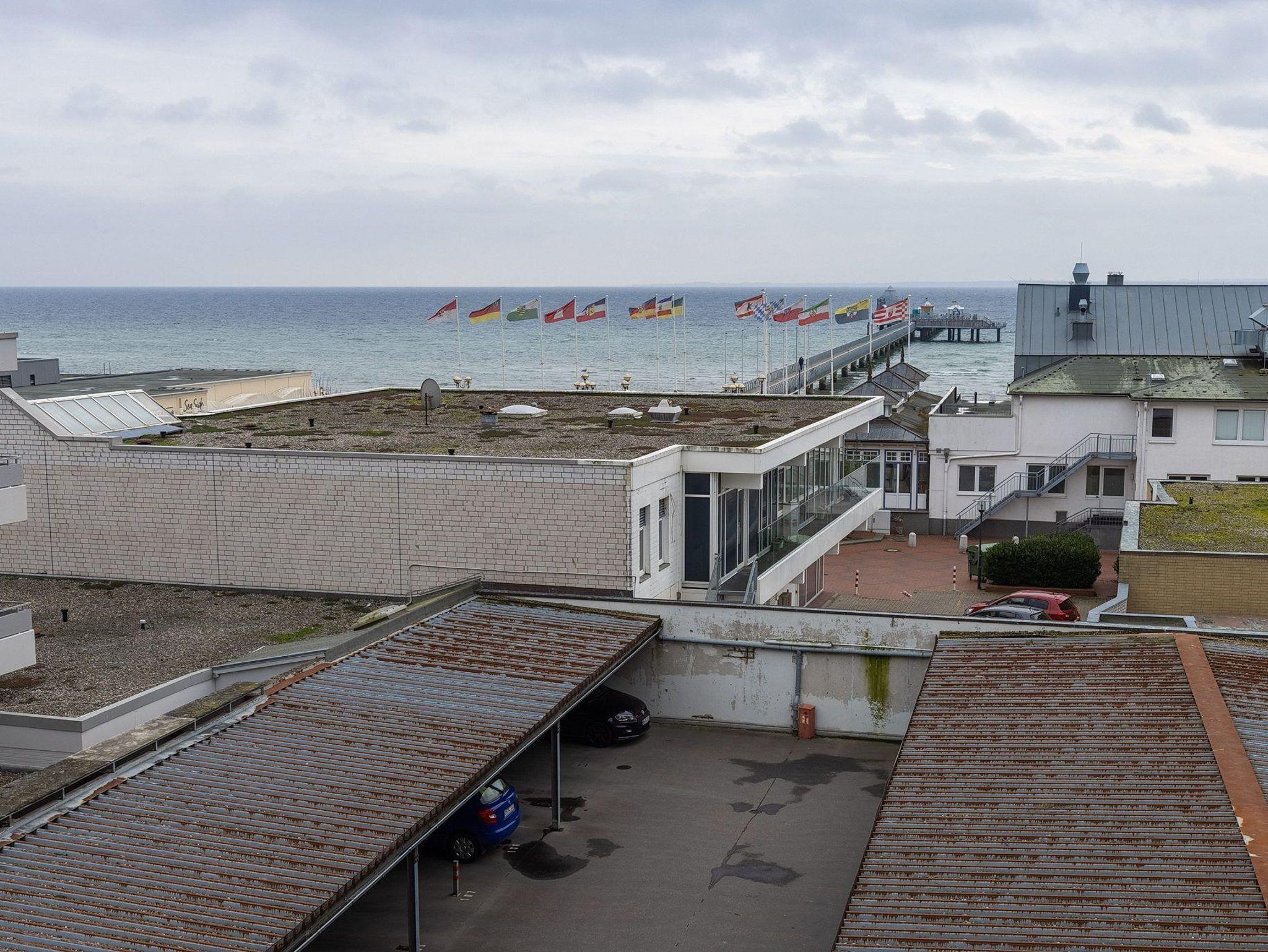 Balkon in südliche Richtung mit Seeblick und Blick auf die Ostsee. Eigener PKW-Stellplatz (max. Höhe 2,00 m), Waschmaschine und Trockner gegen Gebühr.