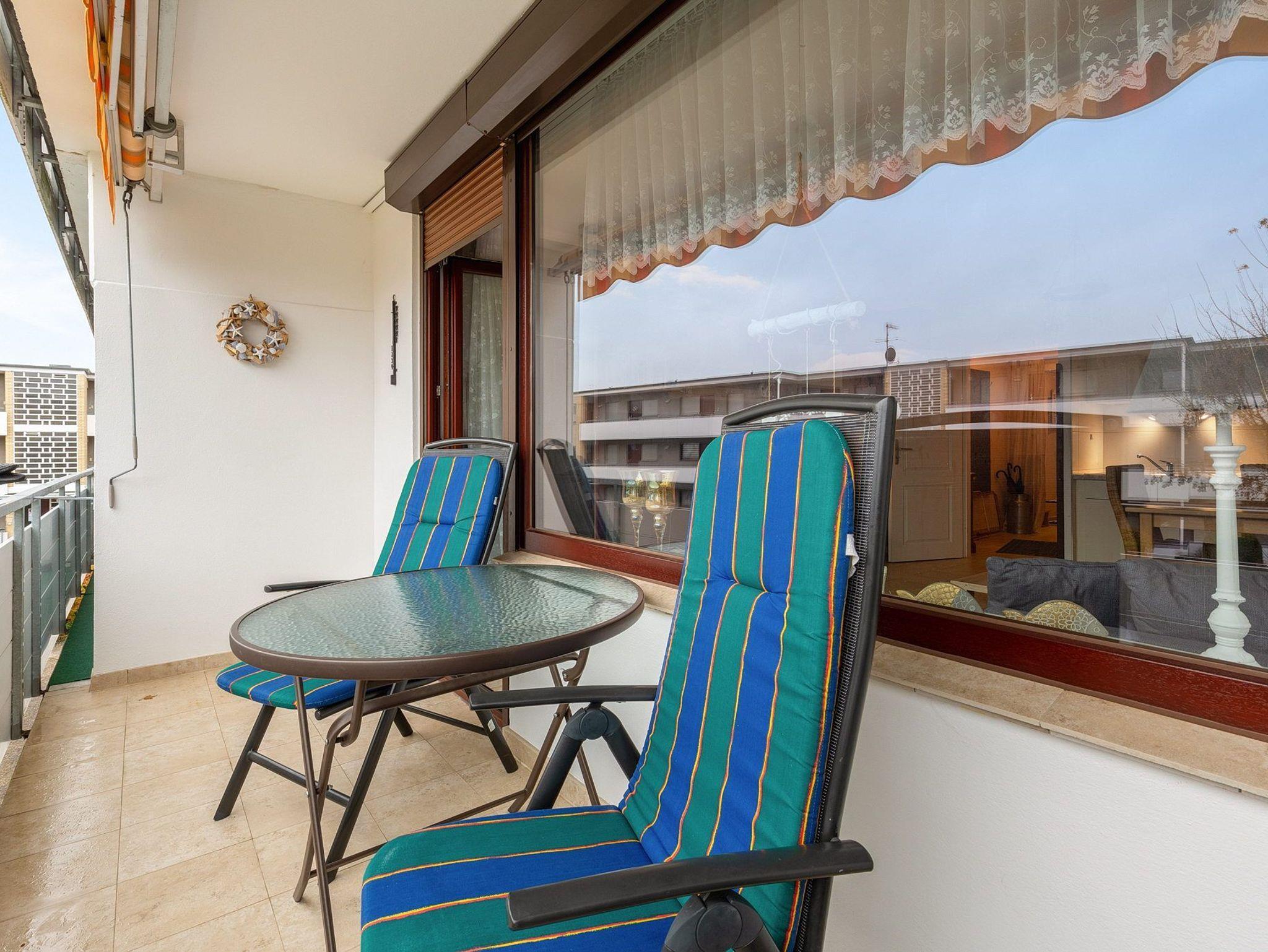 Balkon in süd-westliche Ausrichtung mit Sitzplätzen für 2 Personen. Eine Markise sorgt an sonnigen Tagen für angenehmen Schatten, außerdem steht ein Wäscheständer zur Verfügung. Eigener PKW-Stellplatz vor dem Haus. Abschließbarer Fahrradkeller im Haus. Waschmaschine und Trockner gegen Gebühr im Haus.