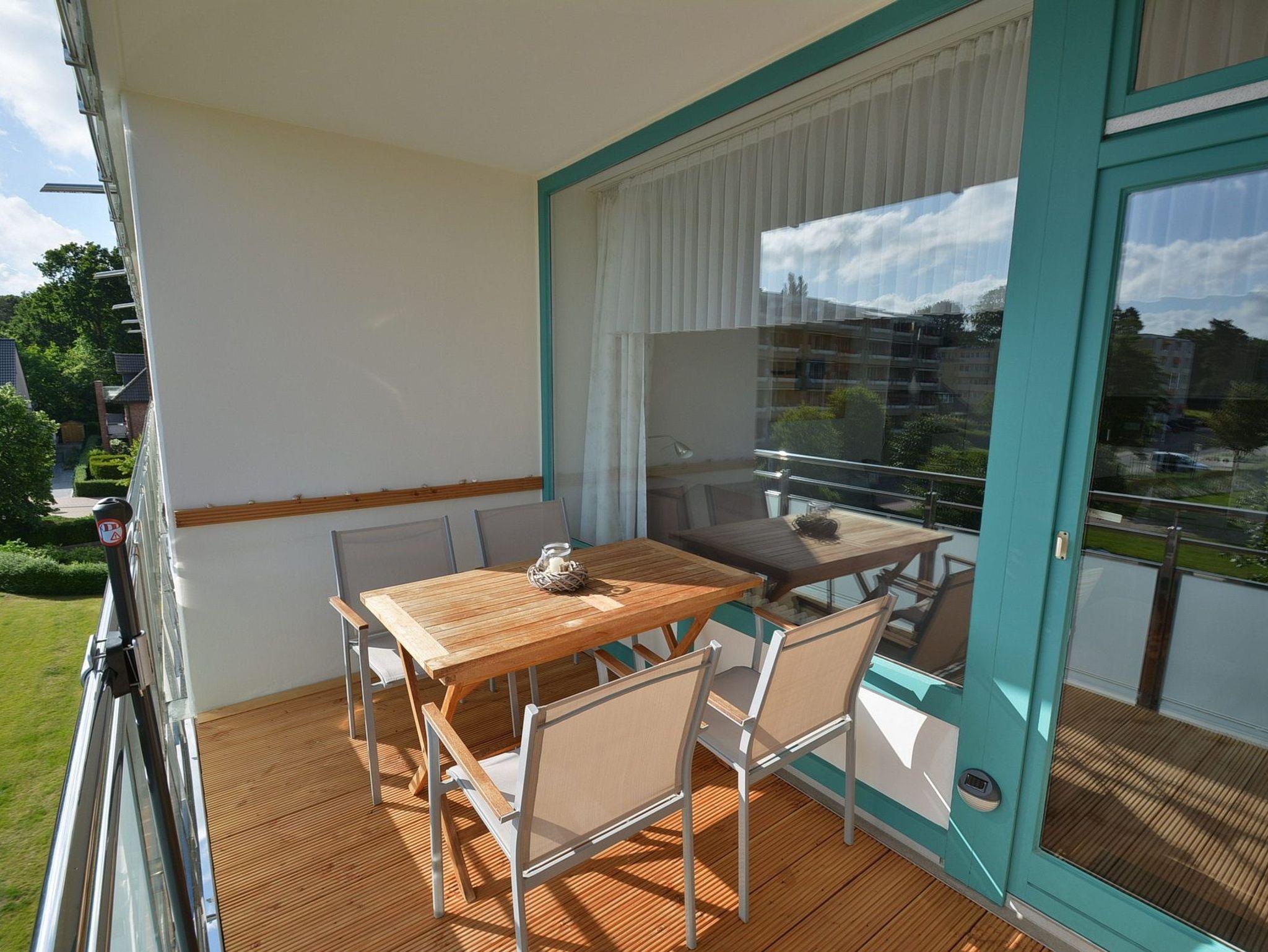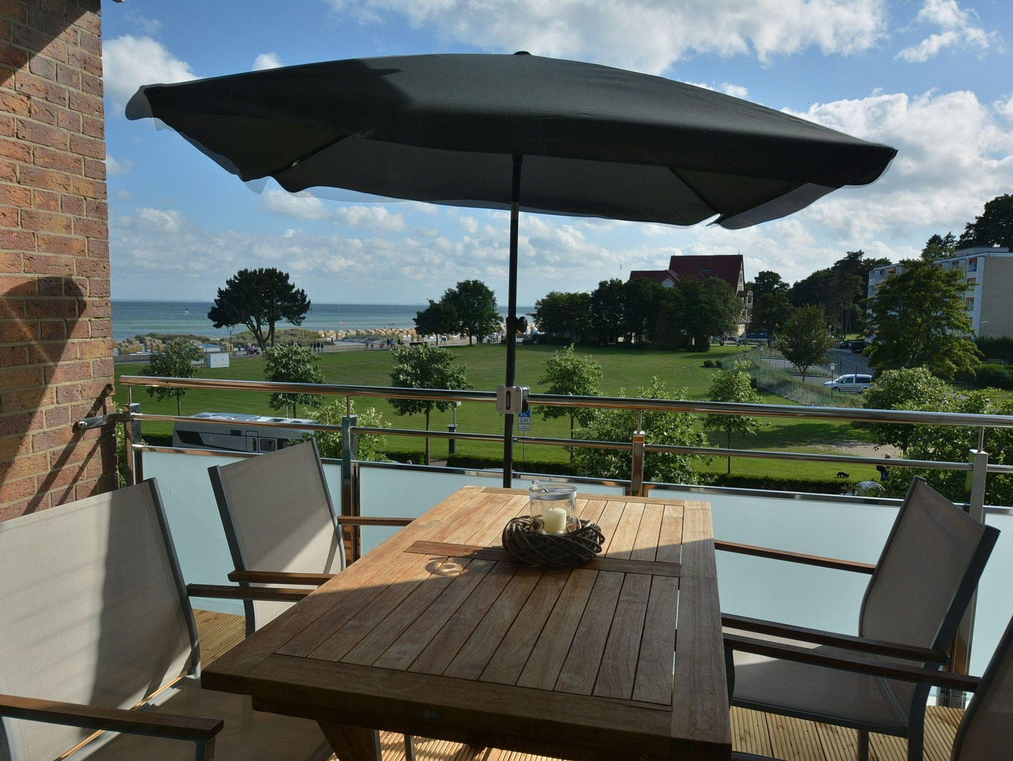 Kostenloser PKW-Stellplatz (sehr eng) in der Tiefgarage (max. Höhe: 1,90m) direkt am Haus. Schöner Balkon in süd-östliche Richtung mit Meerblick. Eine Waschmaschine und ein Trockner befinden sich im Haus und können gegen Gebühr genutzt werden. 2 Abstellplätze im geschlossenem Fahrradraum (Gemeinschaftseigentum).