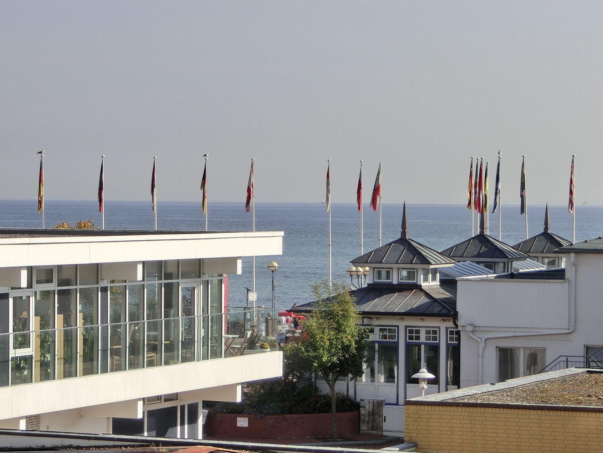 Großer Balkon (ca. 12qm) in südliche Richtung mit Seeblick und Blick auf die Seebrücke. Eigener PKW-Stellplatz (max. Höhe 2,00 m), Waschmaschine und Trockner gegen Gebühr. Kostenloses WLAN.