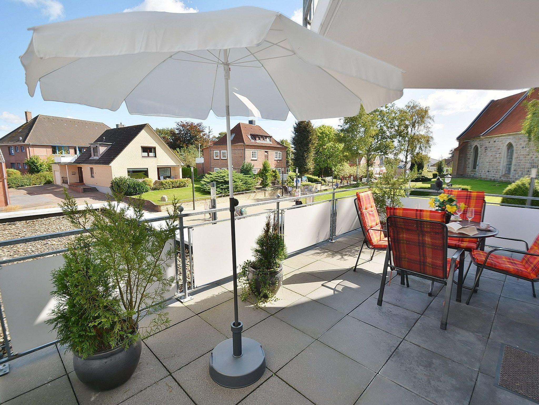 Großer Balkon (15m²) in nord-östliche Richtung, kostenloses W-Lan, PKW-Stellplatz, Waschmaschine und Trockner gegen Gebühr im Haus.