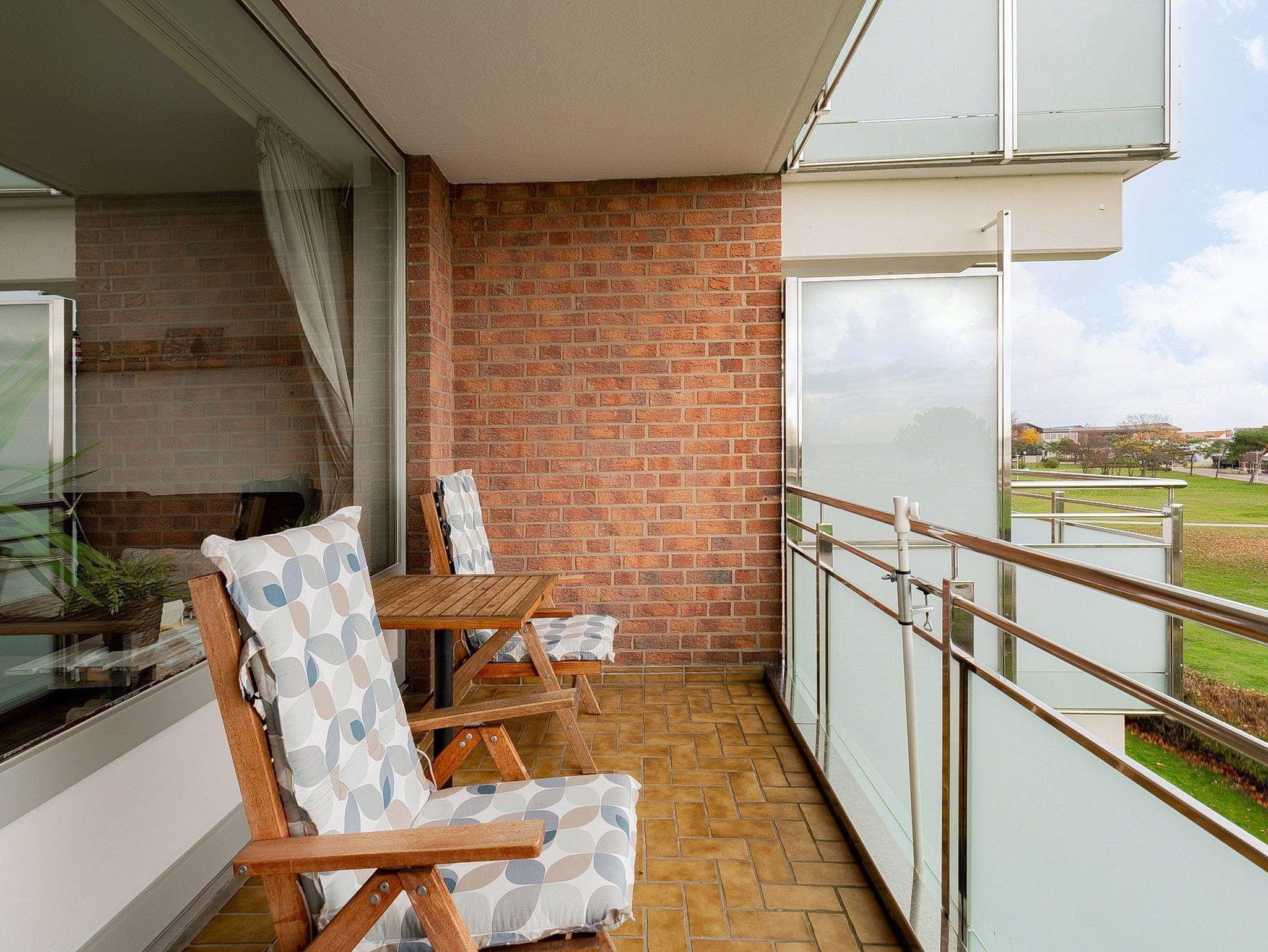 Vom Balkon (mit Markise) in süd-östliche Ausrichtung hat man einen schönen Blick über die gepflegte Rasenfläche bis zur See. Ein PKW-Stellplatz gehört zur Wohnung. Waschmaschine und Trockner befinden sich im Haus und können gegen Gebühr benutzt werden. Kinderreisebett und Hochstuhl stehen kostenlos zur Verfügung.