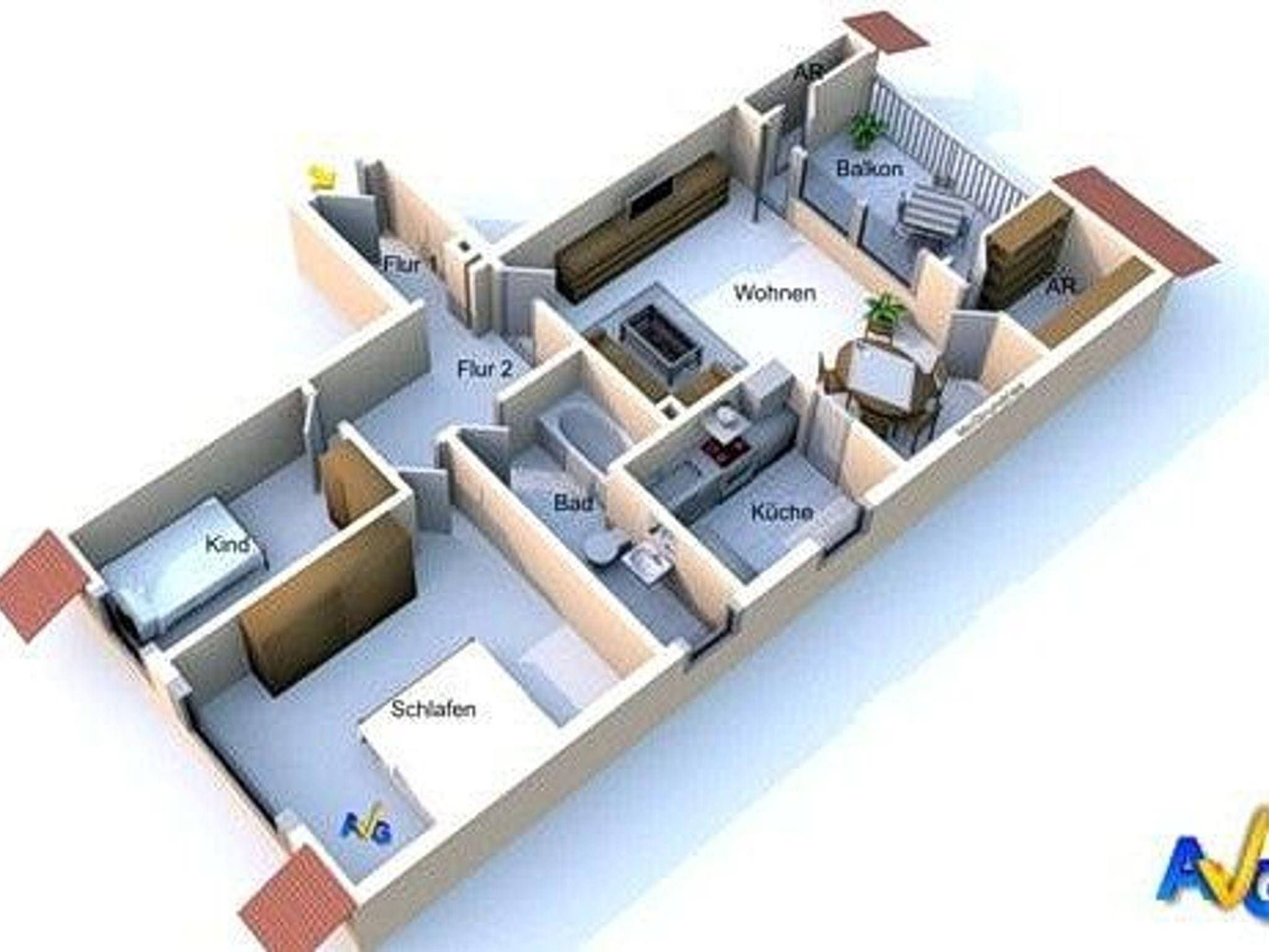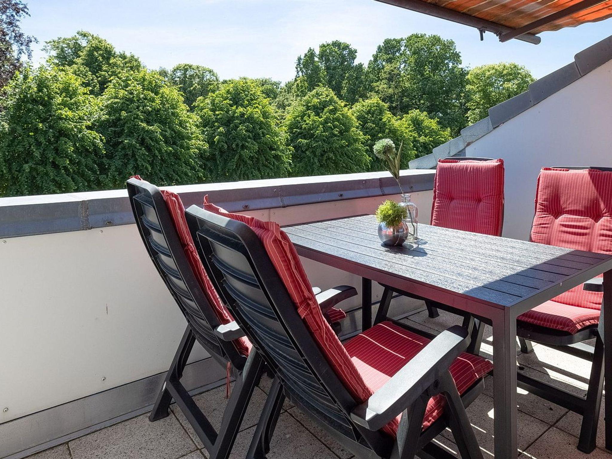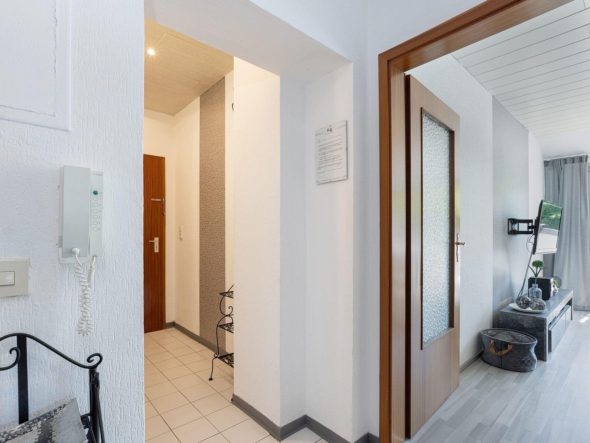 Balkon in südliche Richtung mit Markise, PKW-Abstellplatz in einer Gemeinschaftsgarage (Breite: 2,85 m[nbsp] Höhe 2,16 m). Reisekinderbett und Hochstuhl stehen Ihnen kostenlos zur Verfügung. Fahrradkeller ist über 12 Stufen zu erreichen.