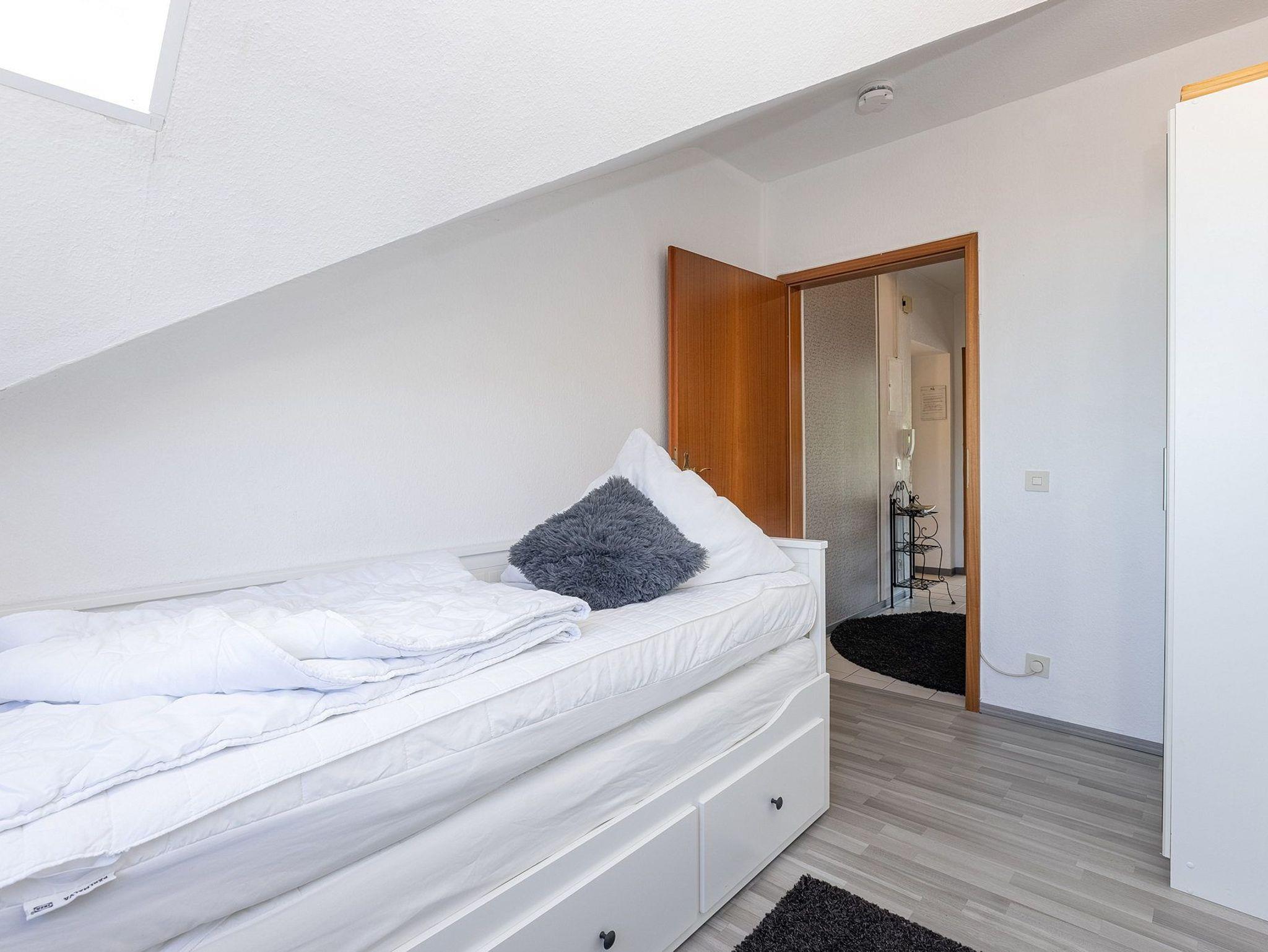 Das Kinderzimmer ist mit einem ausziehbaren Doppelbett (je 90 x 200 cm) und einem kleinen Kleiderschrank ausgestattet. Das Kinderzimmer ist mit Laminatboden ausgelegt. Die Fenster lassen sich durch eine Blickdichte Gardine bzw. das Dachfenster durch ein Rollo verdunkeln.