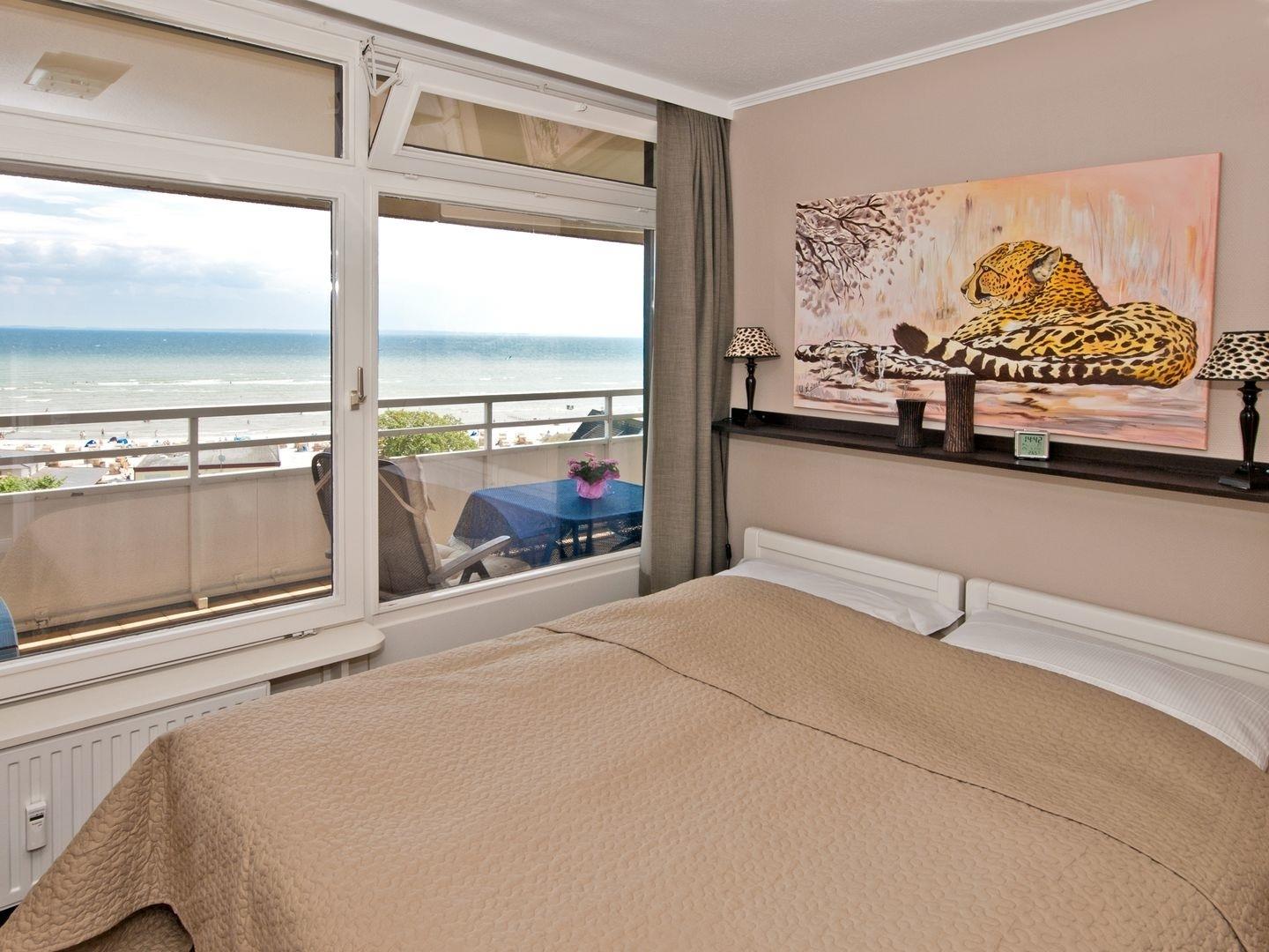 Diese wunderschöne Ferienwohnung in der 7. Etage verfügt über drei Zimmer, Meerblick aus jedem Zimmer und einem rundumlaufenden Eckbalkon (ca. 35 m²).