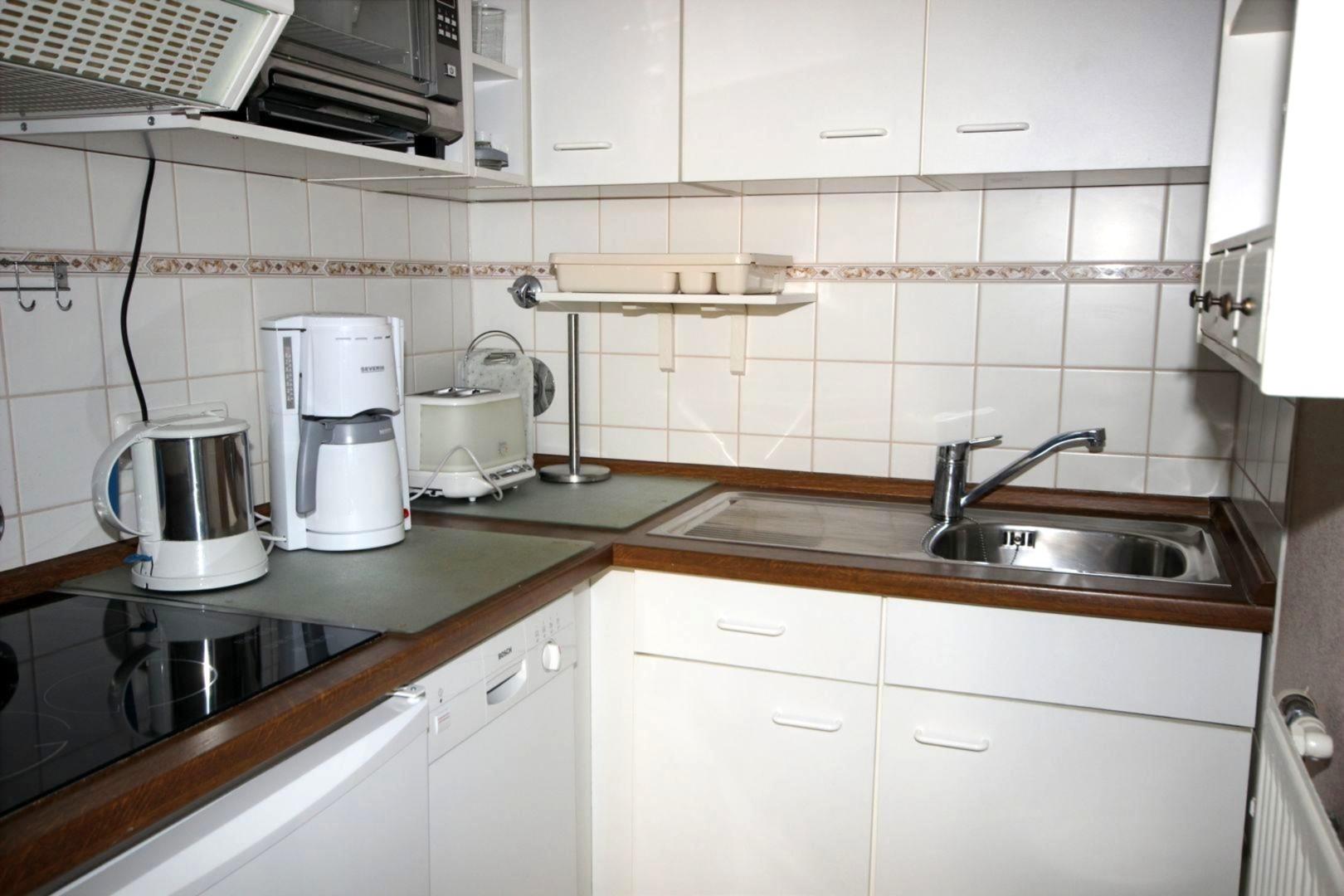 In der Küche gibt es ein Ceranfeld, Kühlschrank, Geschirrspüler, Mikrogrill für Pizza und Aufläufe sowie alle üblichen Küchengeräte.