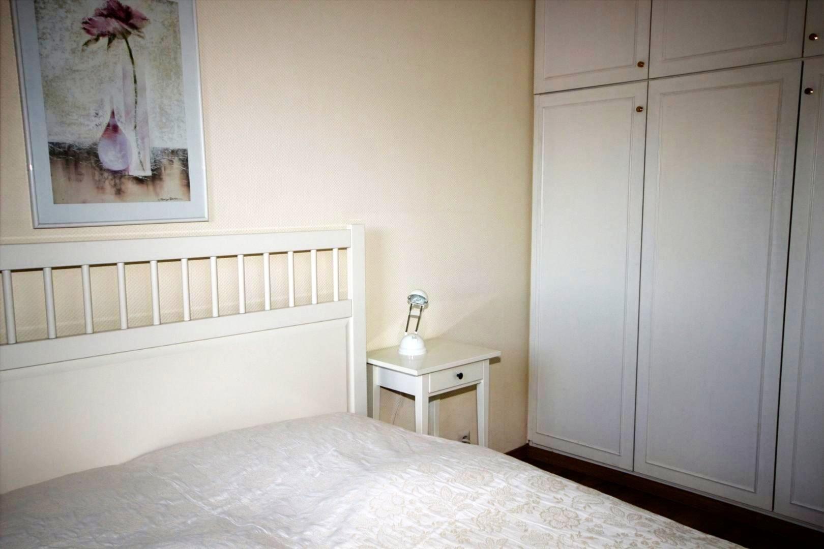 Das Schlafzimmer verfügt über ein Ehebett & Kleiderschrank.