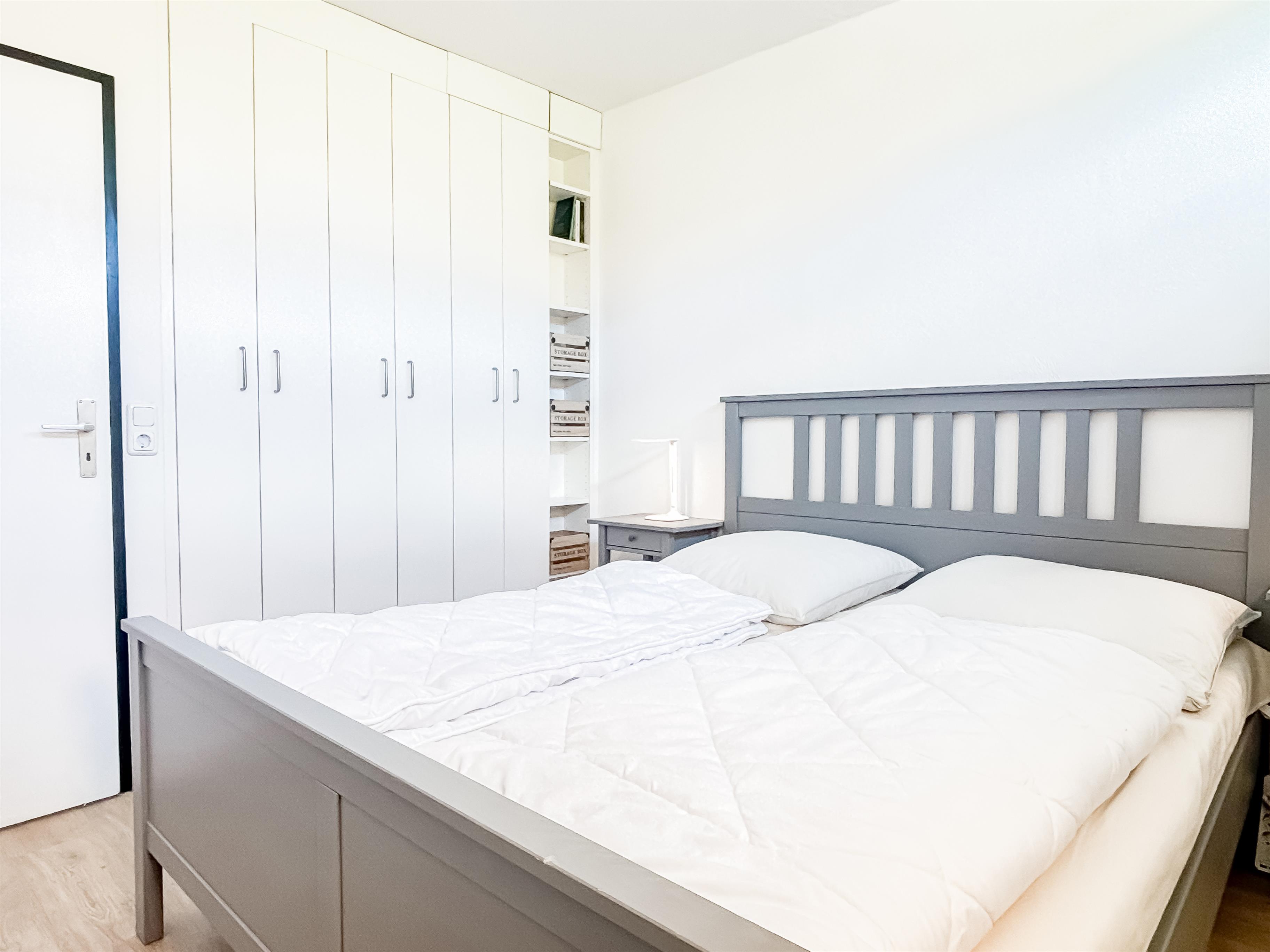Das 2. Schlafzimmer verfügt über ein Bett, das sich bei Bedarf auf 1,60 m ausziehen lässt & einen kleinen Kleiderschrank.