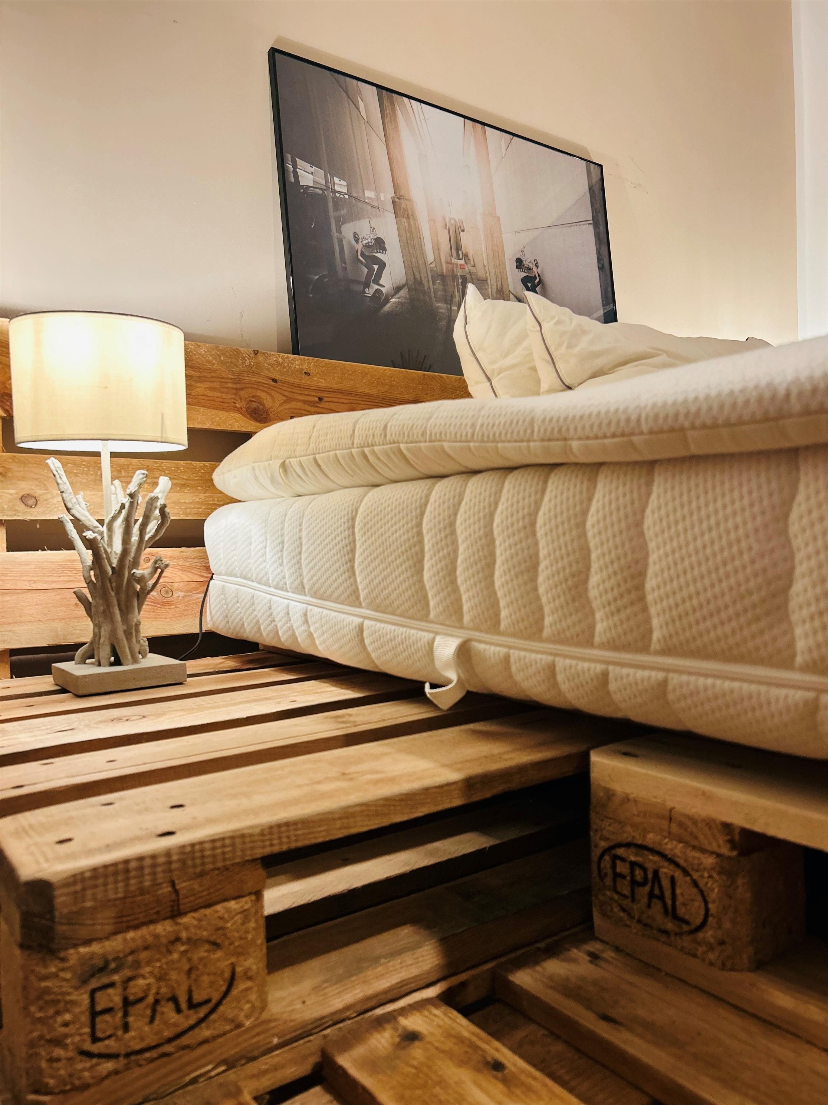 Ein komfortables Platten-Doppelbett sorgt für erholsamen Schlaf, zusätzlich steht ein bequemes Schlafsofa zur Verfügung.
