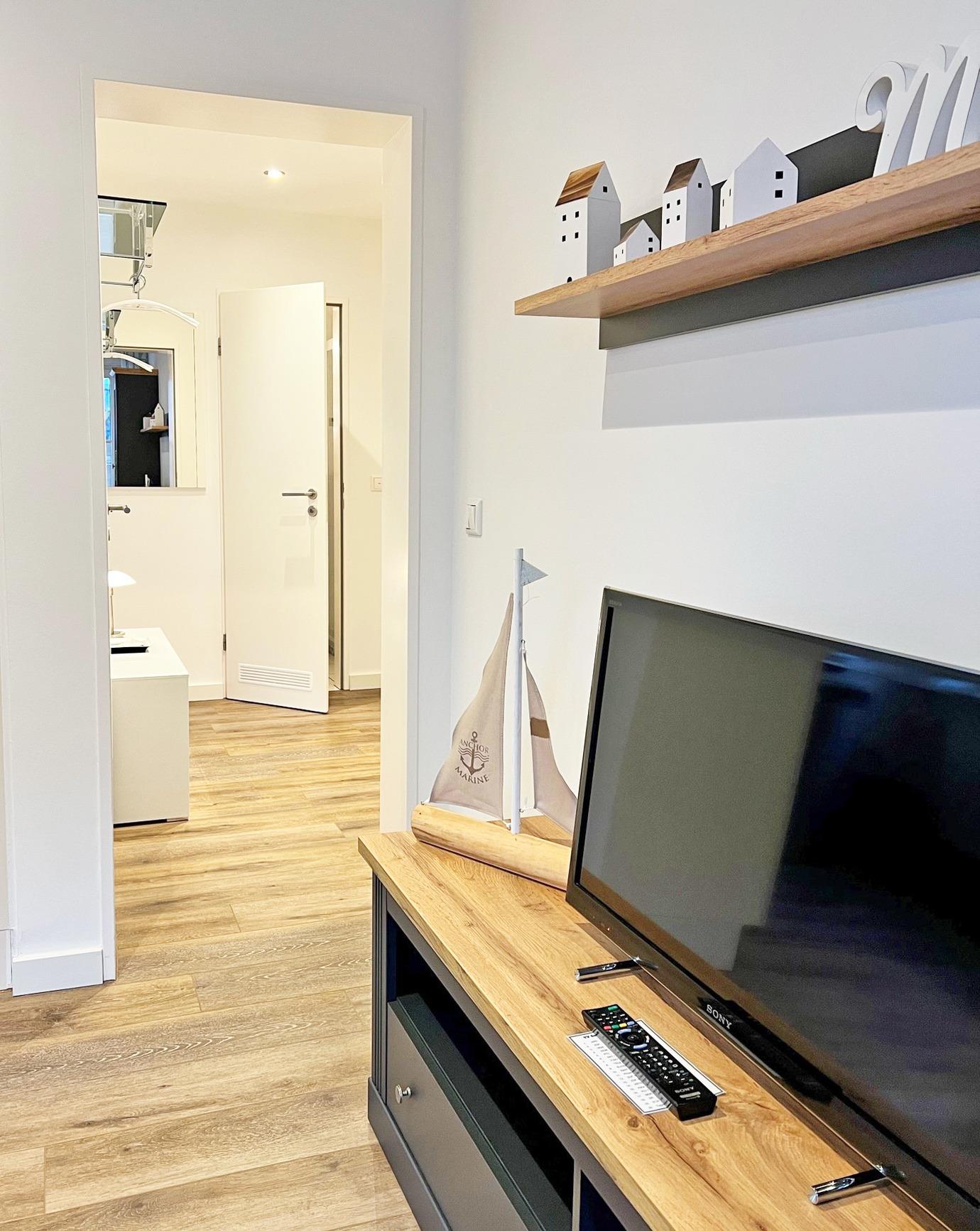 Die Ferienwohnung bietet komfortablen Platz für bis zu drei Personen und wurde kürzlich modernisiert. Dabei wurden nicht nur die Möbel erneuert, sondern auch neue Bodenbeläge verlegt. Der Wohn- und Essbereich ist mit einem bequemen Sofa, einem Esstisch und einem Fernseher ausgestattet. Der teilüberdachte Balkon ist natürlich möbliert. Die offene Küche verfügt über einen Geschirrspüler, einen Backofen, ein Ceranfeld mit zwei Platten, sowie einen Kühlschrank mit Gefrierfach und eine Mikrowelle. Sie ist komplett ausgestattet und lässt somit keine Wünsche offen.