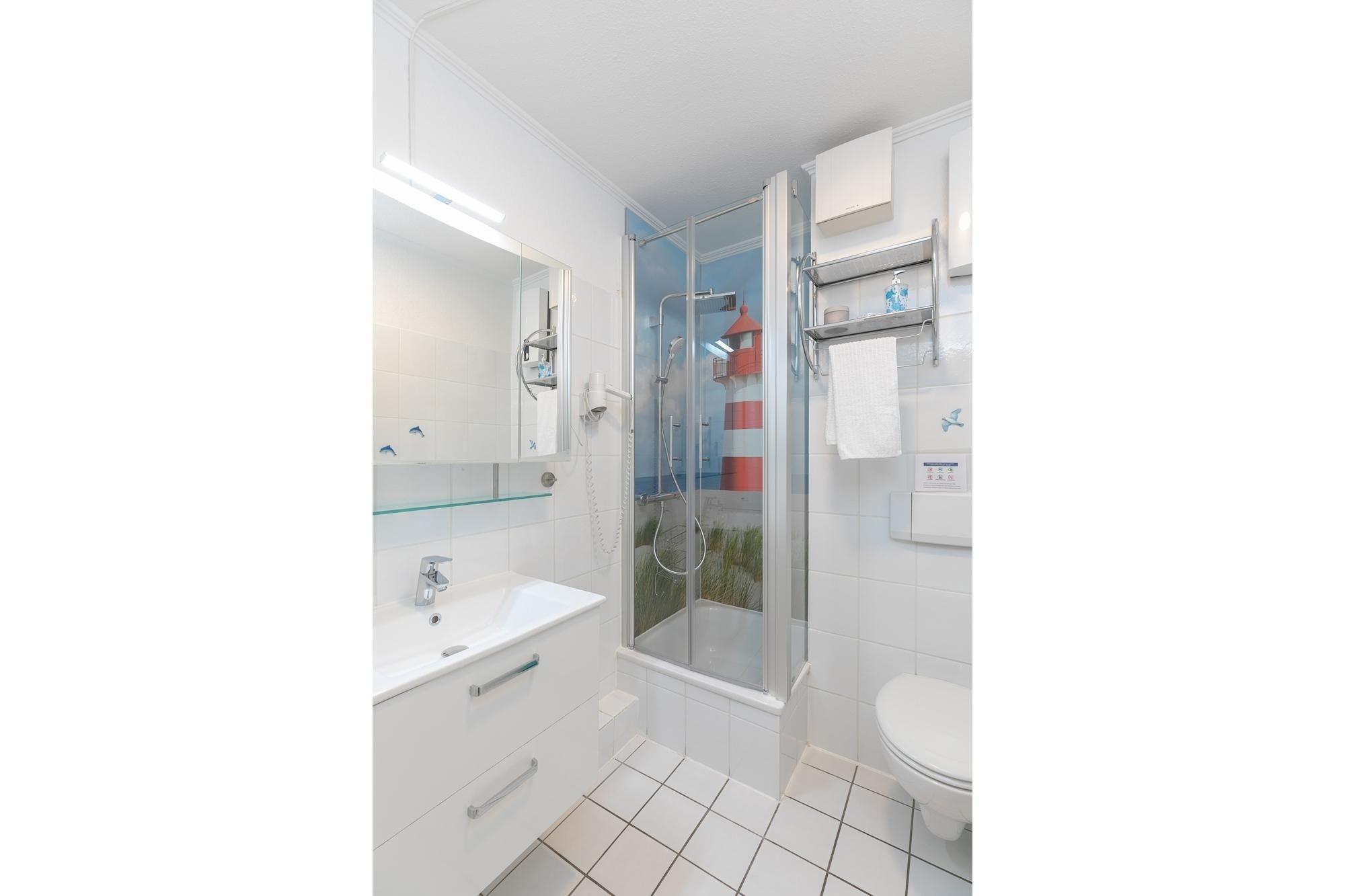 Das helle, nordische gestaltete Wohn- und Schlafzimmer begrüßt Sie mit Couch, Flat-TV und Boxspringbett (durchgehender Topper 180x200 cm), Essplatz und offen angrenzender moderner Küche. Das Duschbad ist weiß gefliest und macht mit einer guten Grundausstattung gute Laune am Morgen. Auf Ihrem möblierten Balkon mit Südostausrichtung können Sie die Sonne genießen, hier scheint Sie den ganzen Vormittag. Einmal tief durchatmen - die herrliche Ostseeluft sorgt für Urlaubsstimmung!