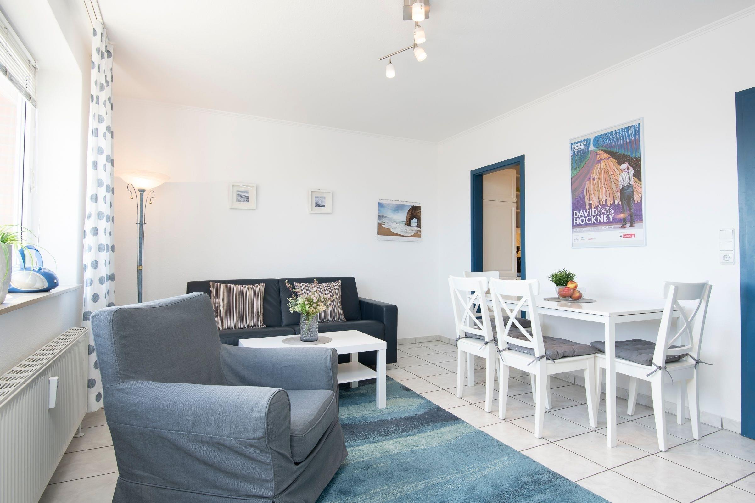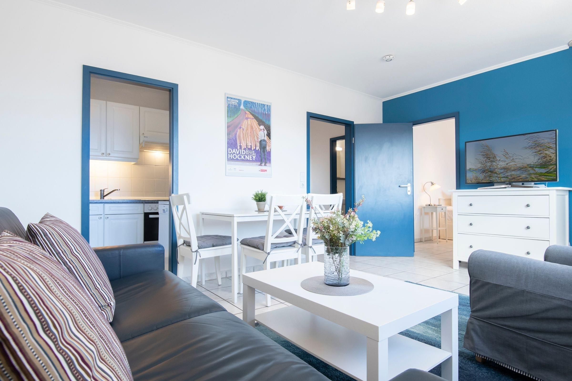 Mit dem Fahrstuhl gelangen Sie bequem in die 2. Etage und erreichen Ihr Urlaubsdomizil. Die Wohnung ist nordisch-maritim eingerichtet und umfasst ein geräumiges Wohnzimmer mit einer hochwertigen Schlafcouch (140 x 200 cm) sowie Flachbild-TV und Stereoanlage mit USB Anschluss, ein separates Schlafzimmer mit einem Doppelbett (160x200cm) und eine gut ausgestattete Küche inkl. Herd mit Ceranfeld und Spülmaschine. Das Badezimmer erwartet Sie mit einer barrierearmen Dusche sowie einem beheizbaren Handtuchhalter. Machen Sie es sich auf Ihrem sonnigen Balkon mit Südostausrichtung bequem und lassen Sie einfach mal die Seele baumeln oder genießen Sie den nahegelegenen Kurpark und die Einkaufsmöglichkeiten bei einem Spaziergang.