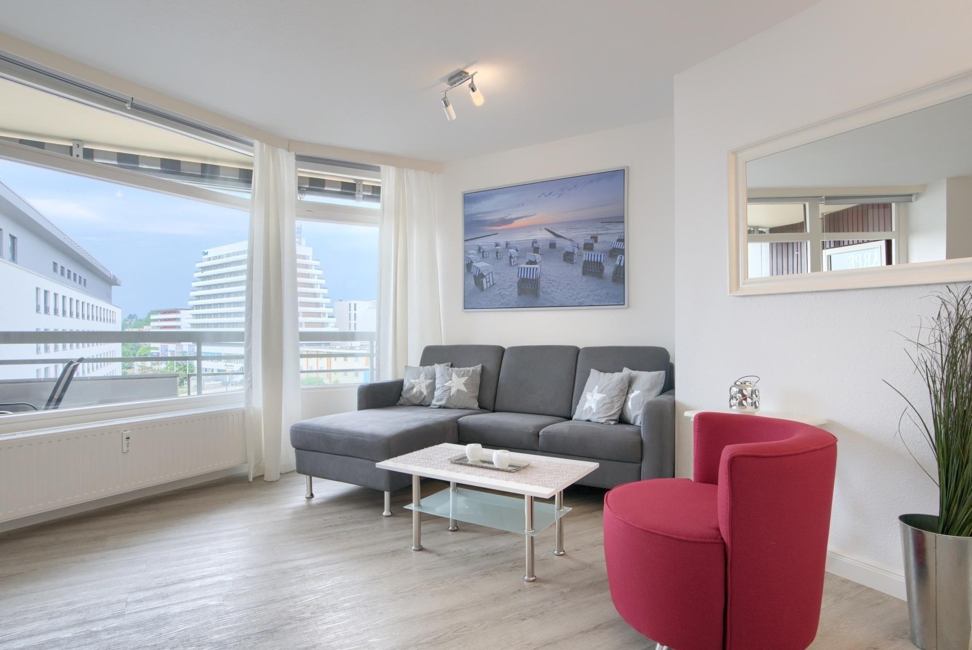 Verbringen Sie Ihre schönsten Tage des Jahres in dieser liebe- und geschmackvoll eingerichteten 3-Zimmer-Ferienwohnung im 5. Stock mit Balkon und seitlichem Meerblick. Auf ca. 63 m² haben Sie mit bis zu 2 Erwachsenen und 2 Kindern reichlich Platz zum Erholen.