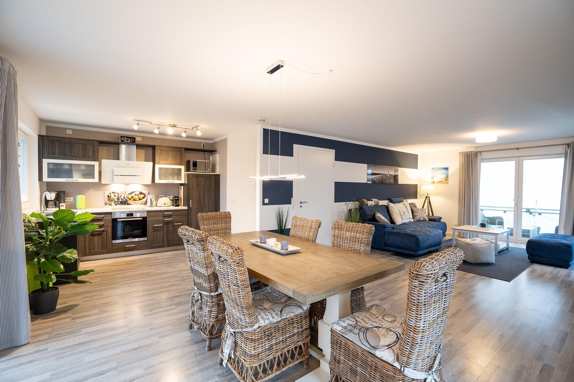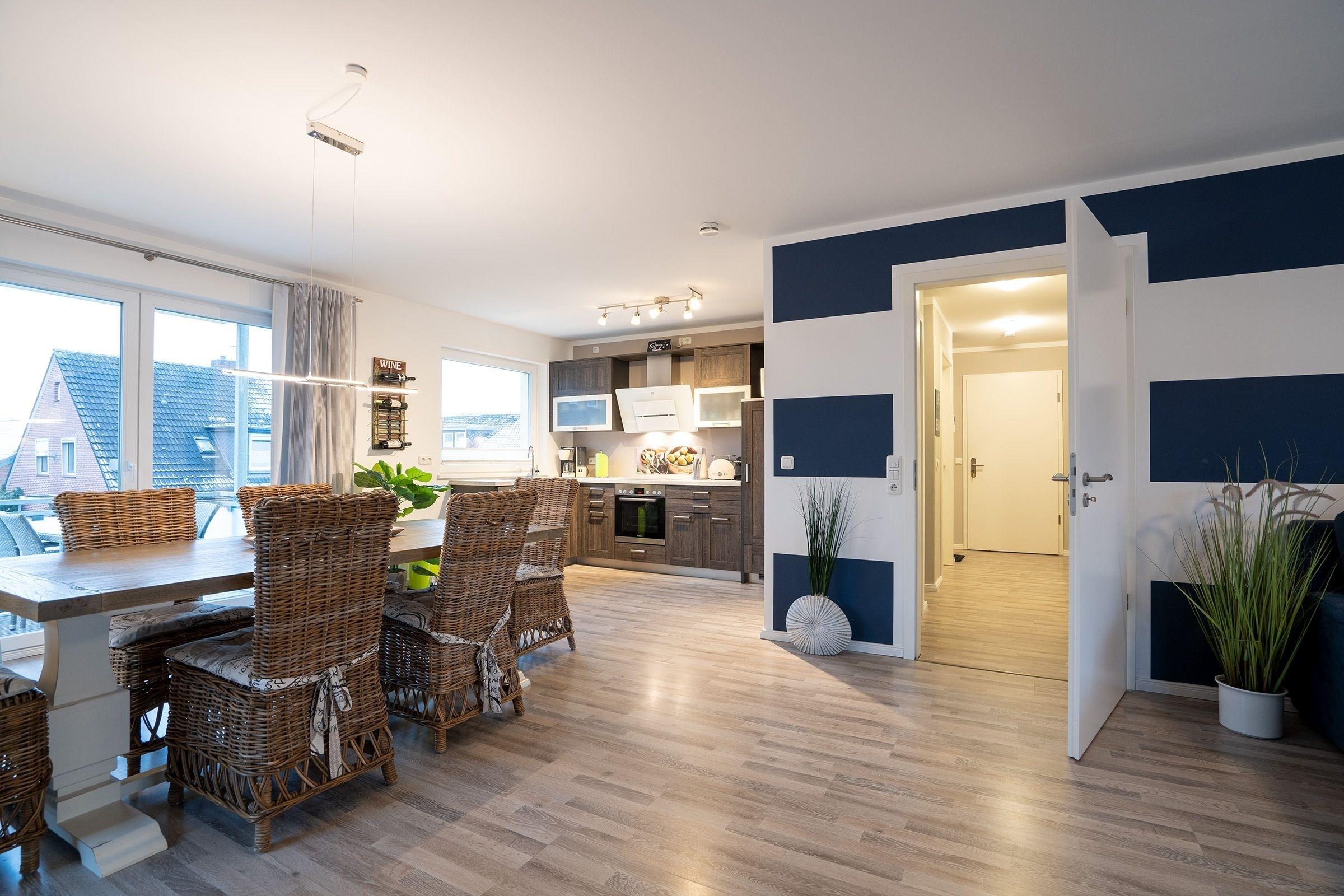 Maritime Gemütlichkeit und moderne Technik erwarten Sie in dieser 3-Zimmer-Ferienwohnung für 4 Erwachsene und 1 Kind.
