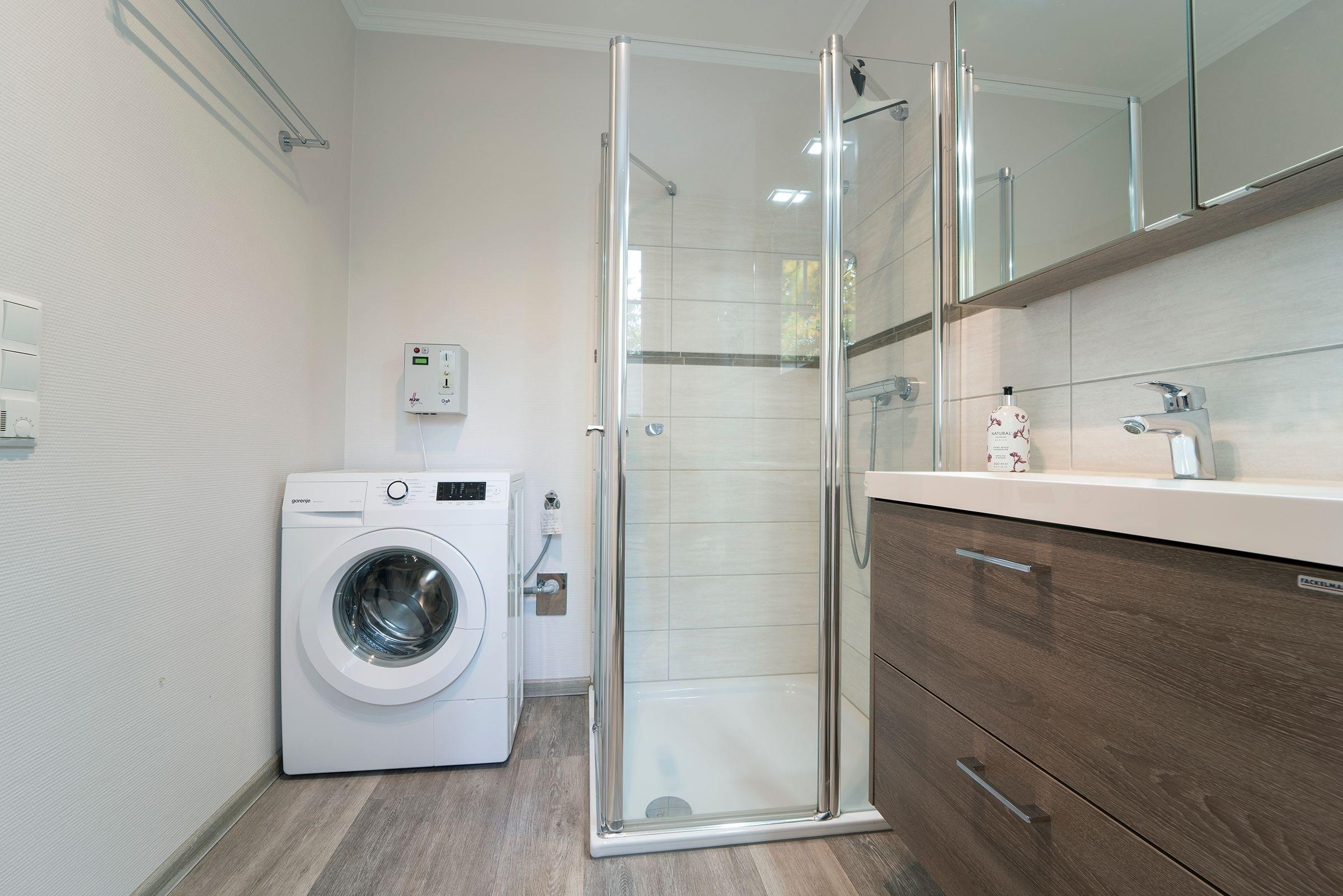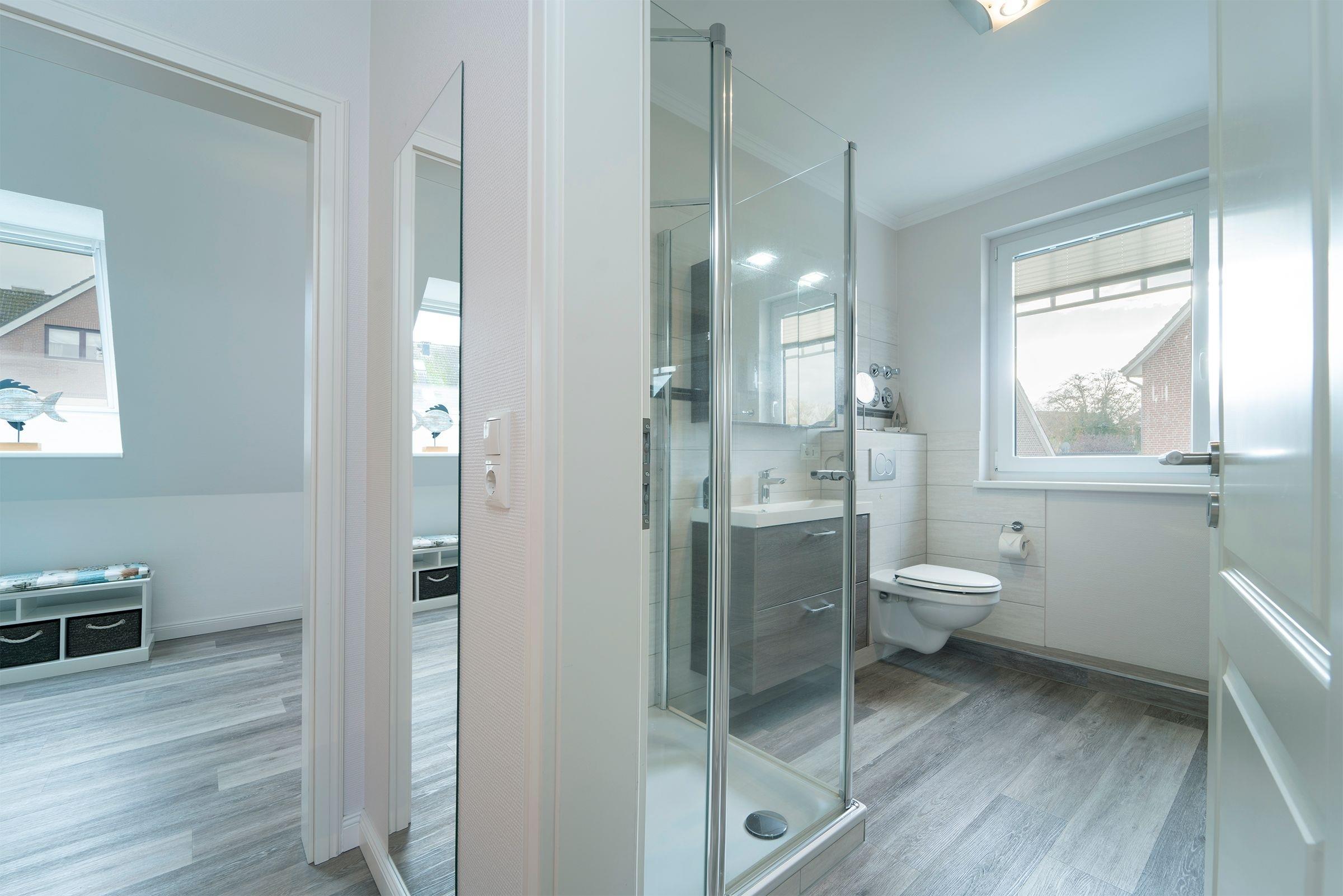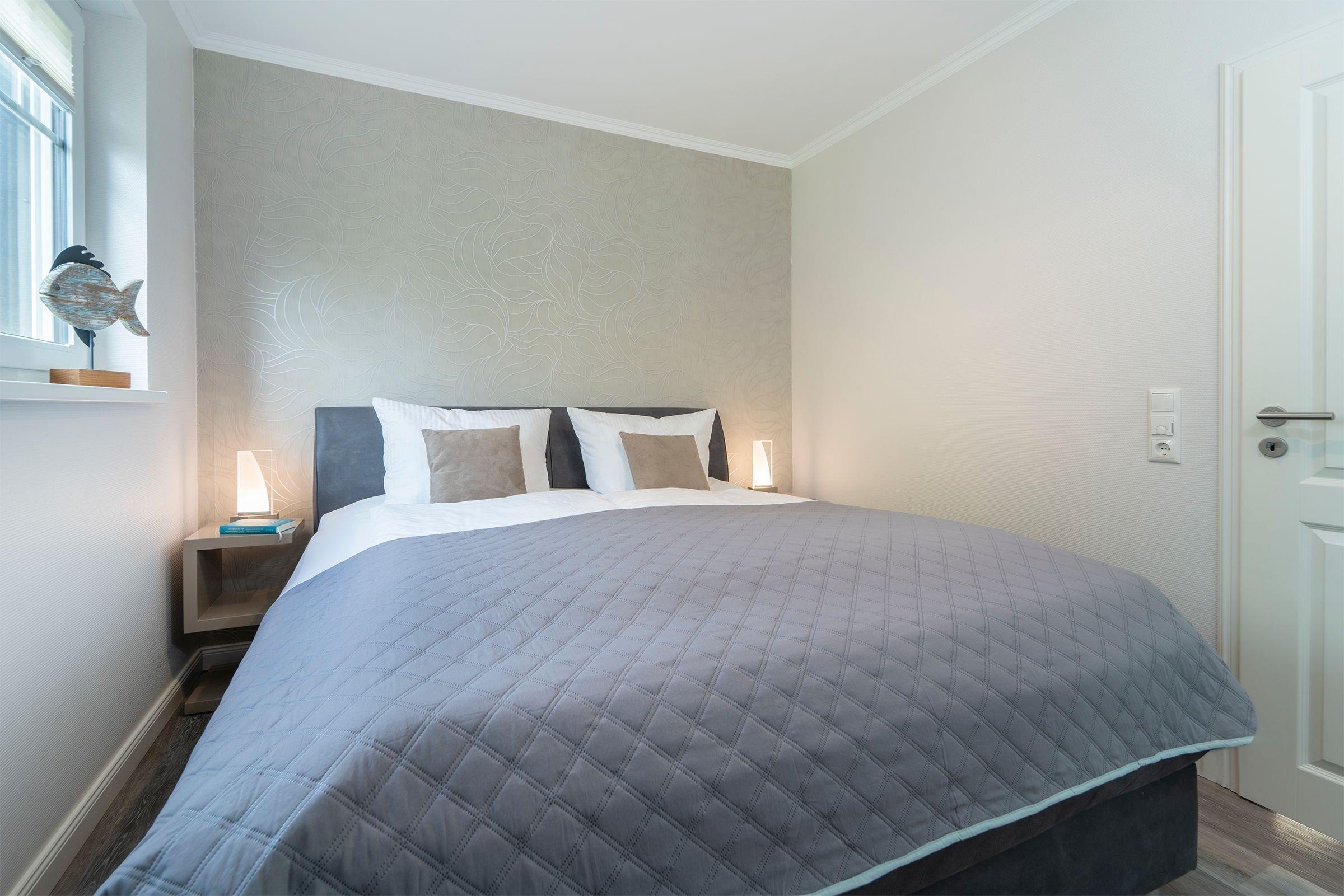 Im Erdgeschoss finden Sie ein helles, lichtdurchflutetes Wohnzimmer mit einer gemütlichen Sofalandschaft und einem modernen Flachbildfernseher. Im angrenzenden Essbereich trifft sich die ganze Familie um schöne Abende zu verbringen. In der komfortablen Küche bleiben keine Wünsche offen. Von der Spülmaschine, der Mikrowelle, einem Kühlschrank mit Gefrierfach und Backofen bis hin zum Wasserkocher und Toaster ist alles für Ihr perfektes Dinner vorhanden. Im Erdgeschoss steht ein Gästezimmer mit einem Einzelbett (Federkernmatratze, 90x200 cm) zur Verfügung. Auf gleicher Etage befindet sich ein Duschbad mit Waschbecken, WC und Waschmaschine gegen Gebühr. Das Haus verfügt über ein zweites, geräumiges Badezimmer mit Dusche und Sauna in der 1. Etage. Ebenfalls in der 1. Etage befinden sich zwei komfortable Schlafzimmer. Nach einem erlebnisreichen Urlaubstag finden Sie mit den hochwertigen Original ORTHOPÄDIKA Boxspring-Doppelbetten (180x200 cm bzw. 160x200 cm) problemlos Entspannung und Ruhe. In jedem Schlafzimmer befindet sich ein Einbauschrank und ein Flachbild-TV sowie Verdunklungsrollos.